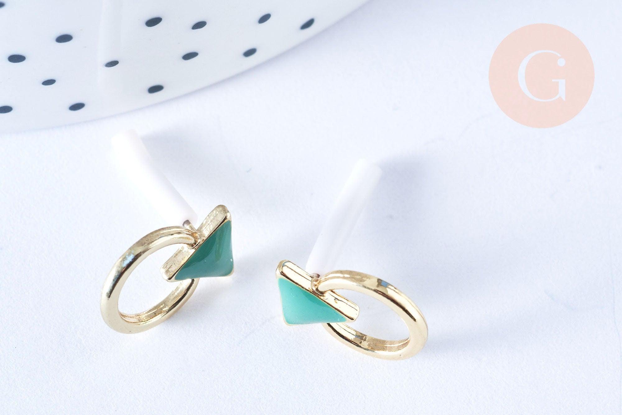 Pendientes de zamac dorado con triángulo esmaltado verde, joyas de oro, creación de joyas, 13,5 mm, par
