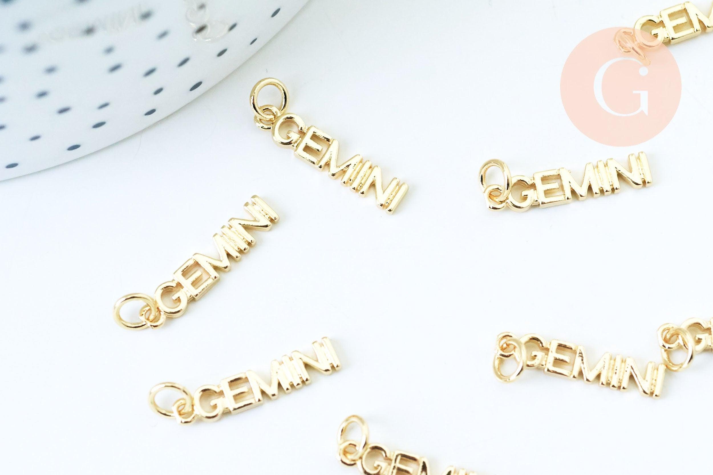 Charm Géminis, latón chapado en oro de 18k, sin níquel, creación de joyería astrológica, colgante del horóscopo, 19mm, x1 G6047