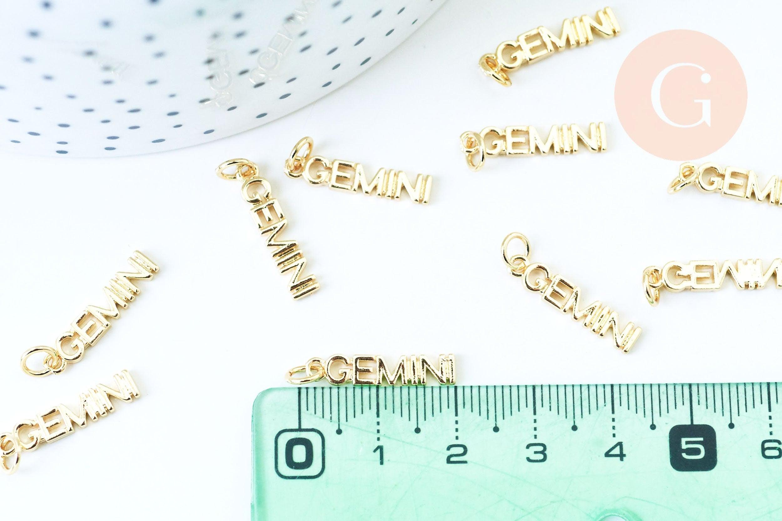 Para crear magníficos collares, pendientes y pulseras, adopta este lindo colgante Géminis en latón dorado.