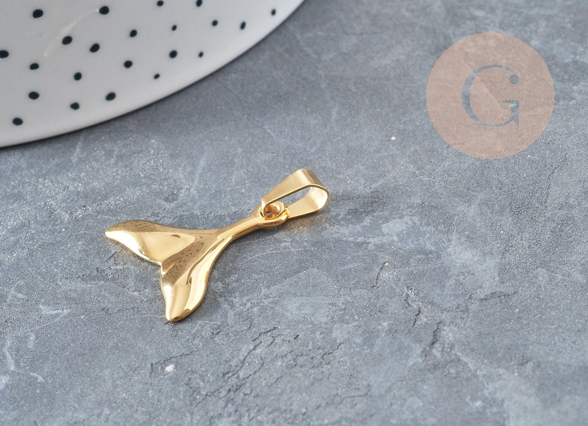 Aporta un toque marino y poético a tus creaciones con este charm de cola de pez dorado , inspirado en las sirenas. Fabricado en acero inoxidable 304 bañado en oro de 18 quilates , combina elegancia y durabilidad para realzar tus joyas de bricolaje. Su elegante diseño y acabado brillante lo convierten en un colgante ideal para los amantes del estilo oceánico y la joyería inspirada en el mar.