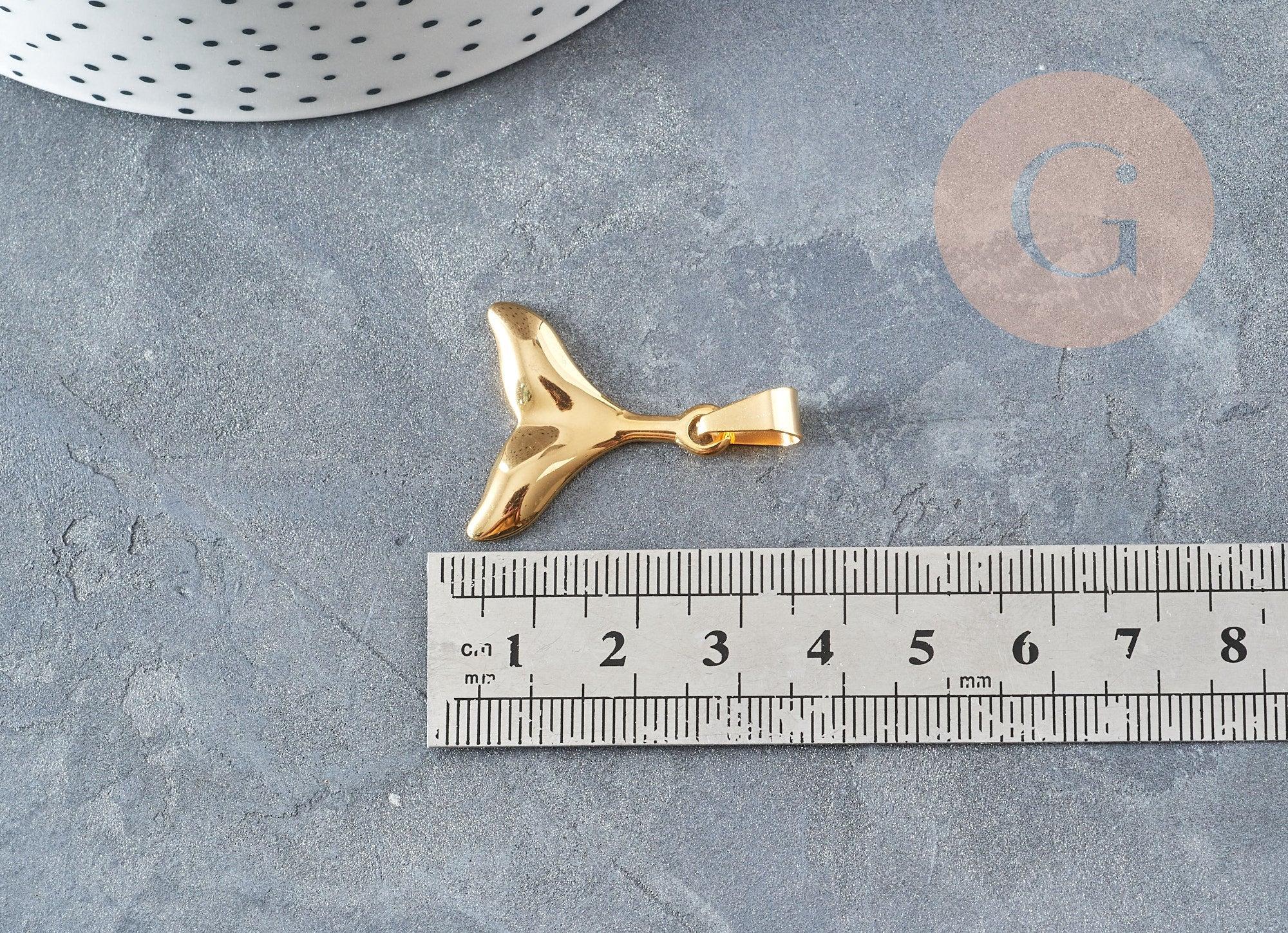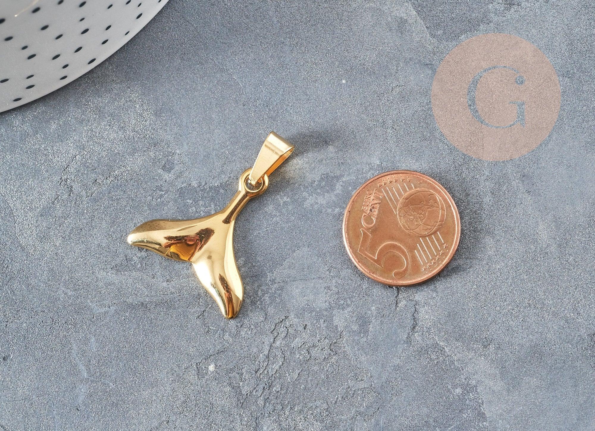 Charm de cola de pez de acero inoxidable 304 chapado en oro de 18 quilates, 26 mm, x1 (G5640)