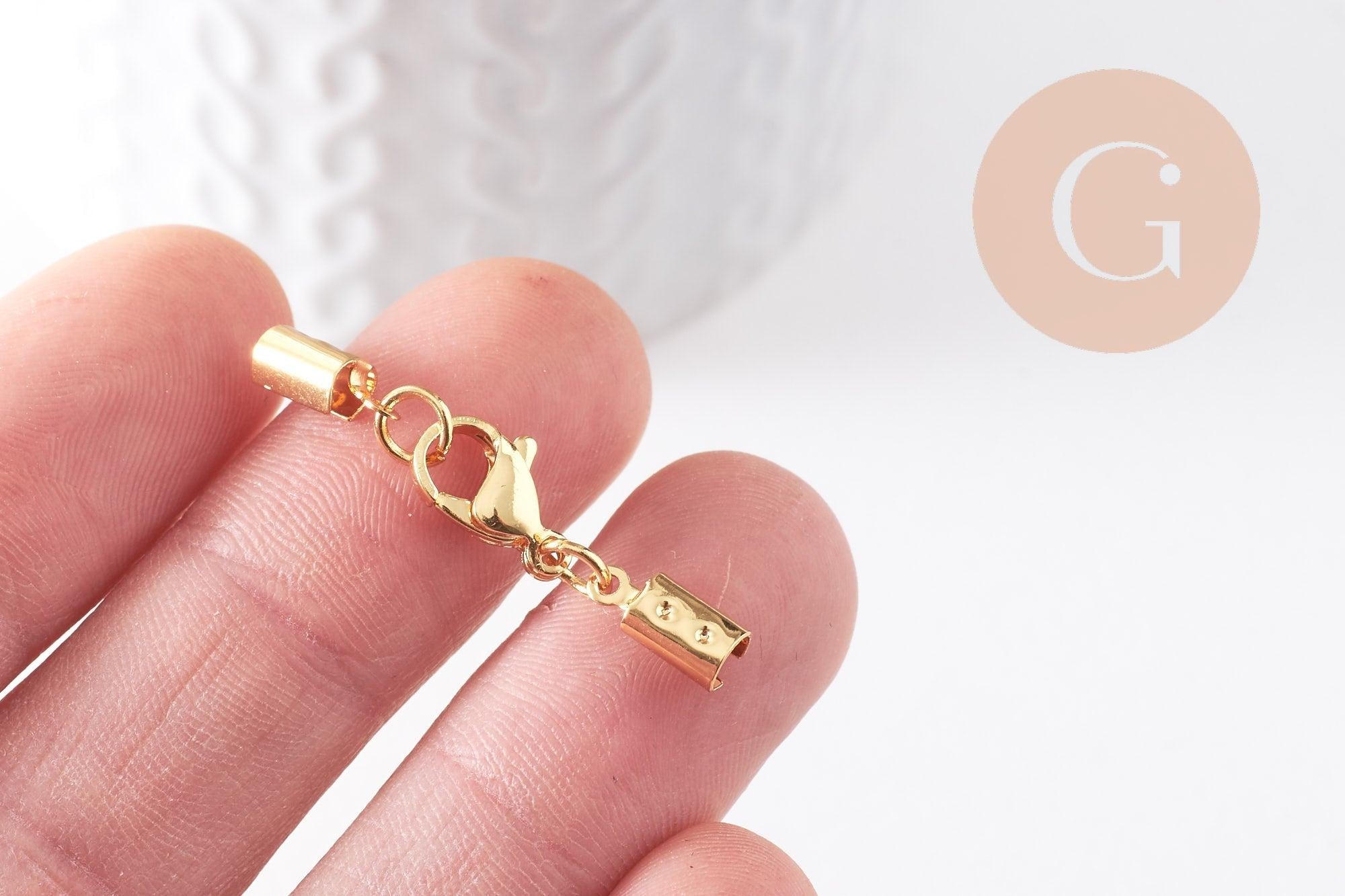Cierre mosquetón y terminales de acero inoxidable 304 bañado en oro 36mm, x1 (G4006)