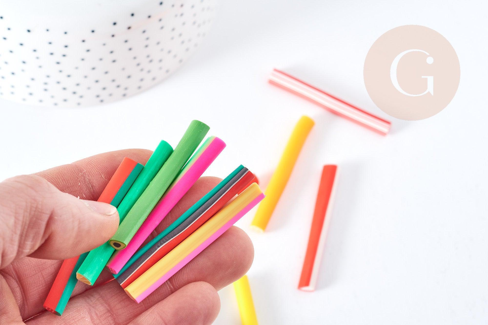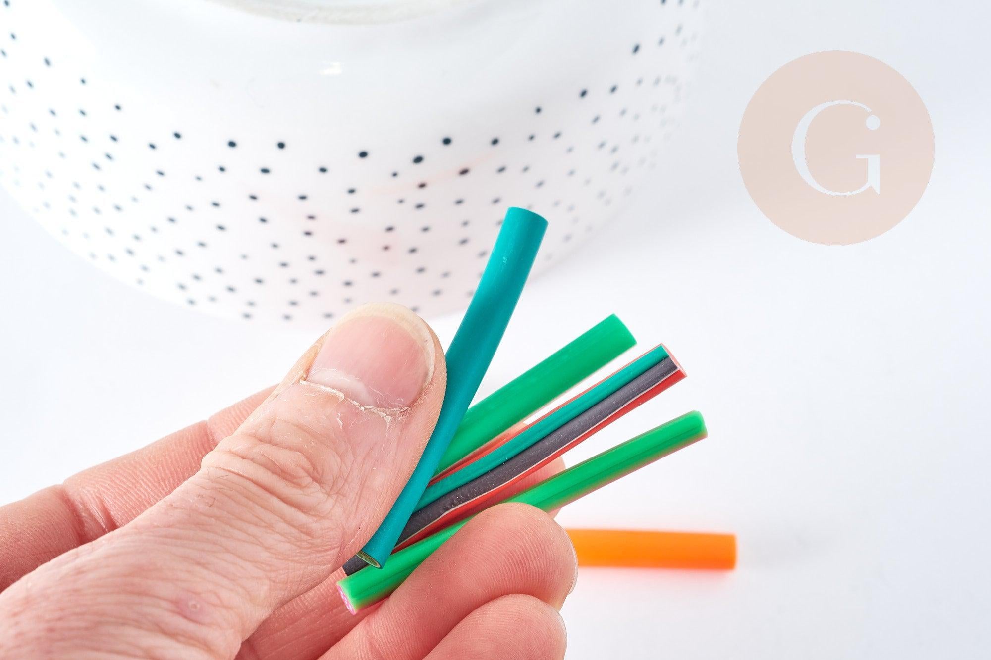 Las cañas están diseñadas para cortarse en rodajas finas y se pueden cortar hasta 70-80 rodajas por caña. Aunque las cañas están precocidas, también puedes meterlas en el horno durante 30 minutos a 110°C para una mejor integración con tu arcilla Fimo.