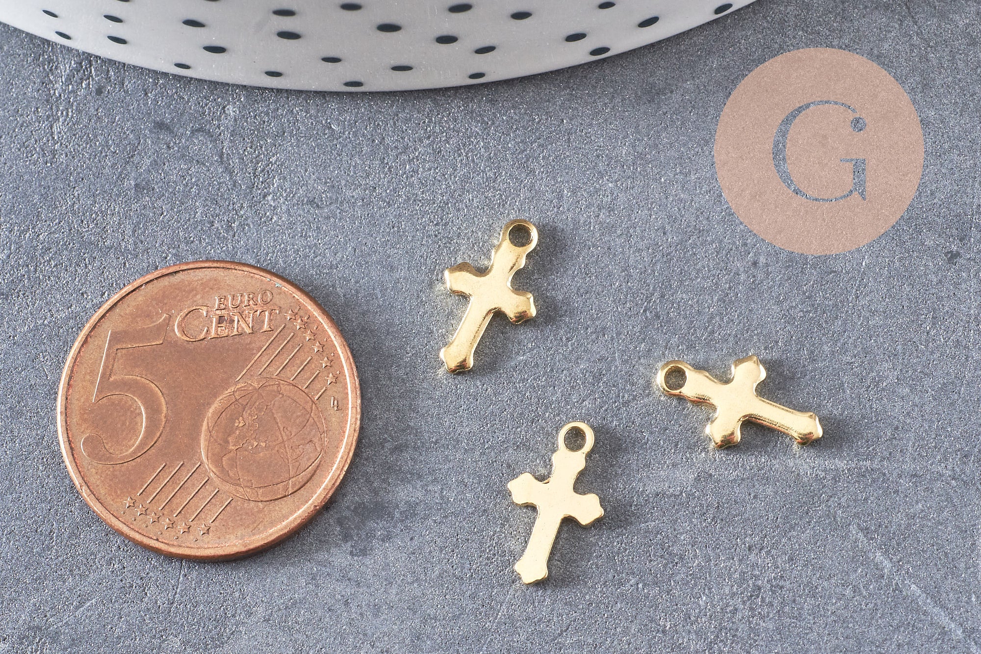 Un delicado colgante de cruz, fabricado en acero inoxidable dorado 304 , ideal para tus elegantes y duraderas creaciones de joyería DIY .