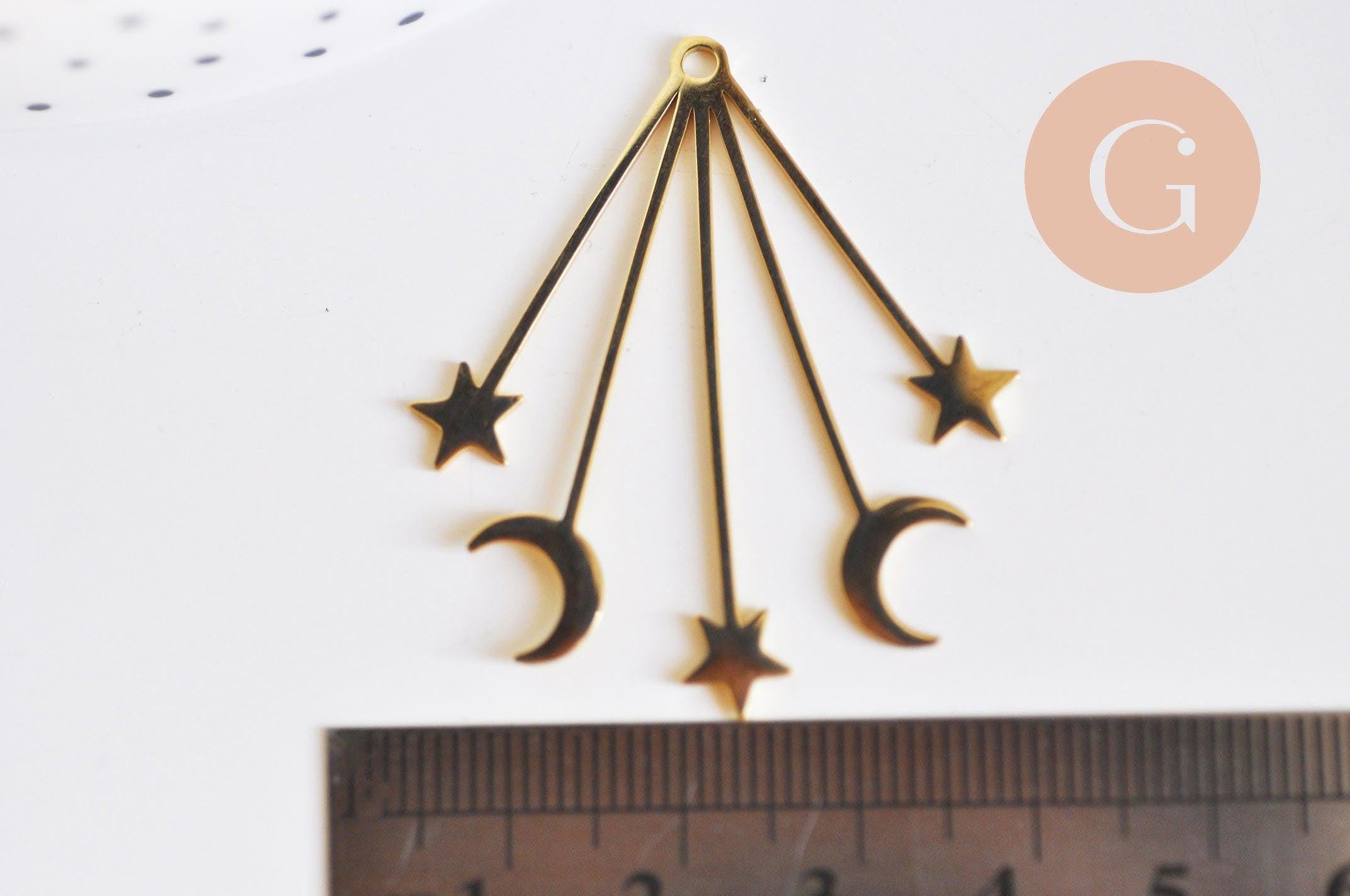 Colgante acero dorado lunas y estrellas 41mm, charm dorado, acero inoxidable dorado, colgante sin níquel, x1 G6163
