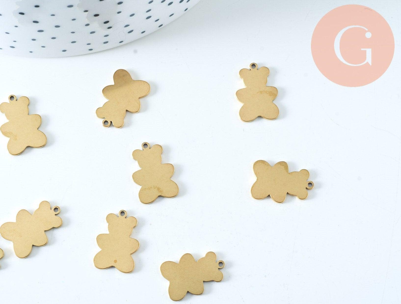Dale un toque adorable a tus creaciones DIY con este colgante de osito de peluche de acero inoxidable bañado en oro . Este encantador osito evoca la dulzura de la infancia y le dará un toque divertido y elegante a tus joyas.