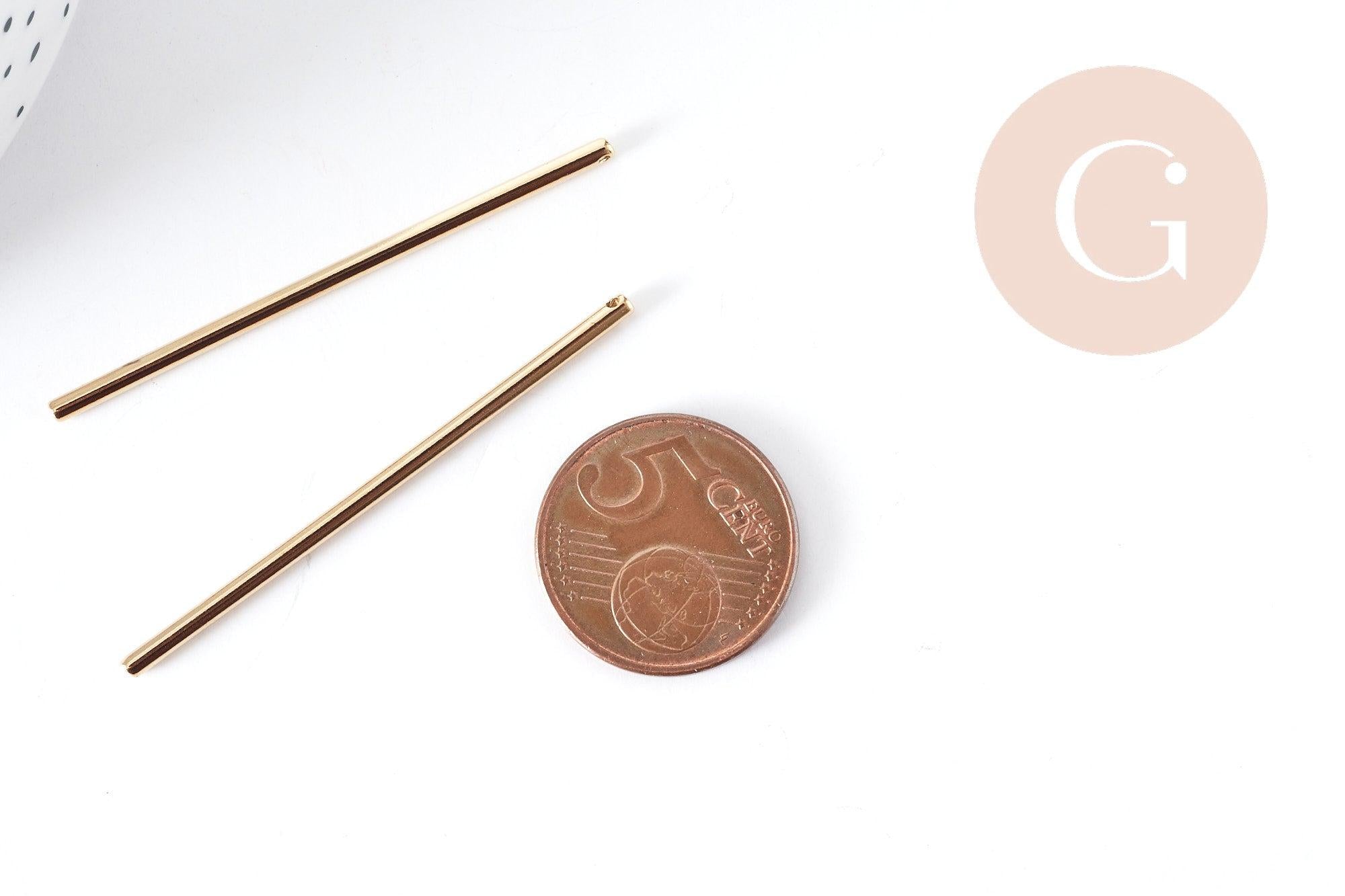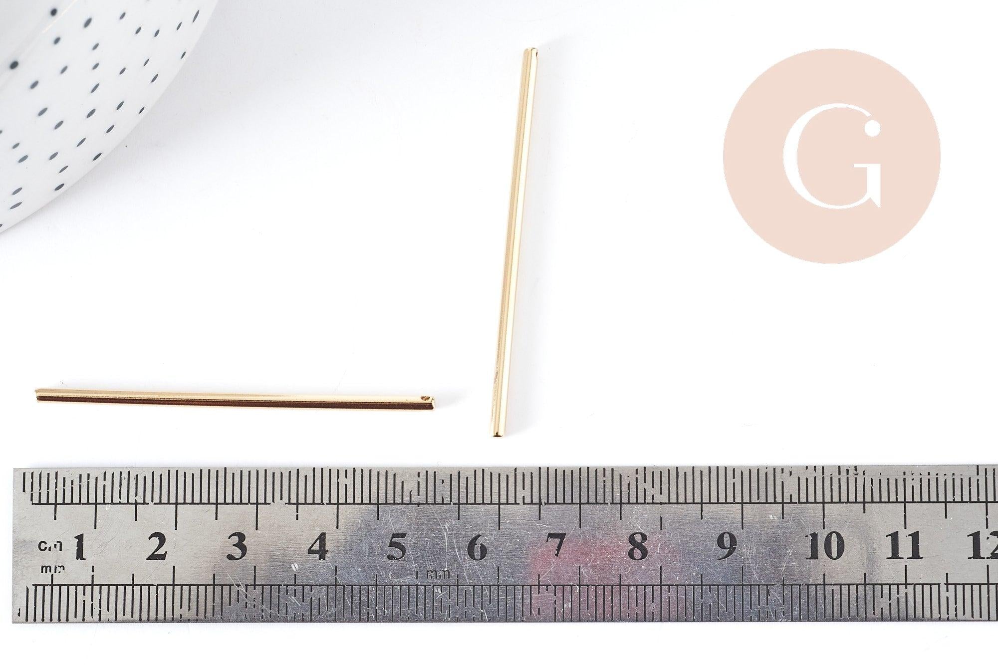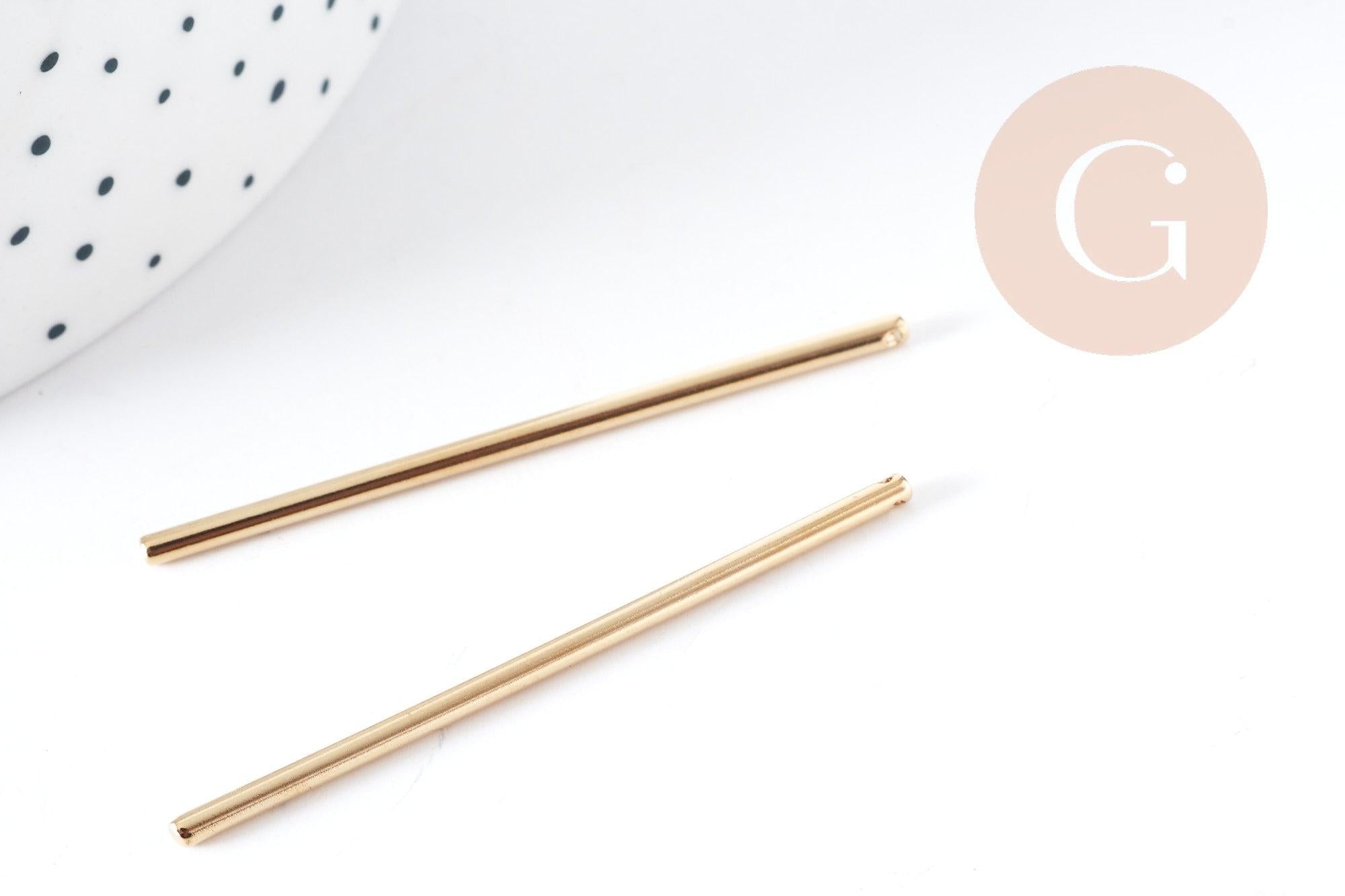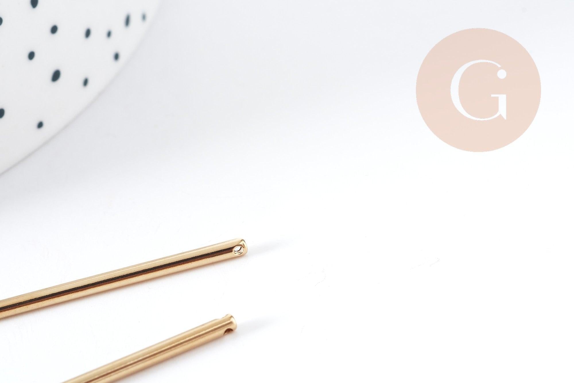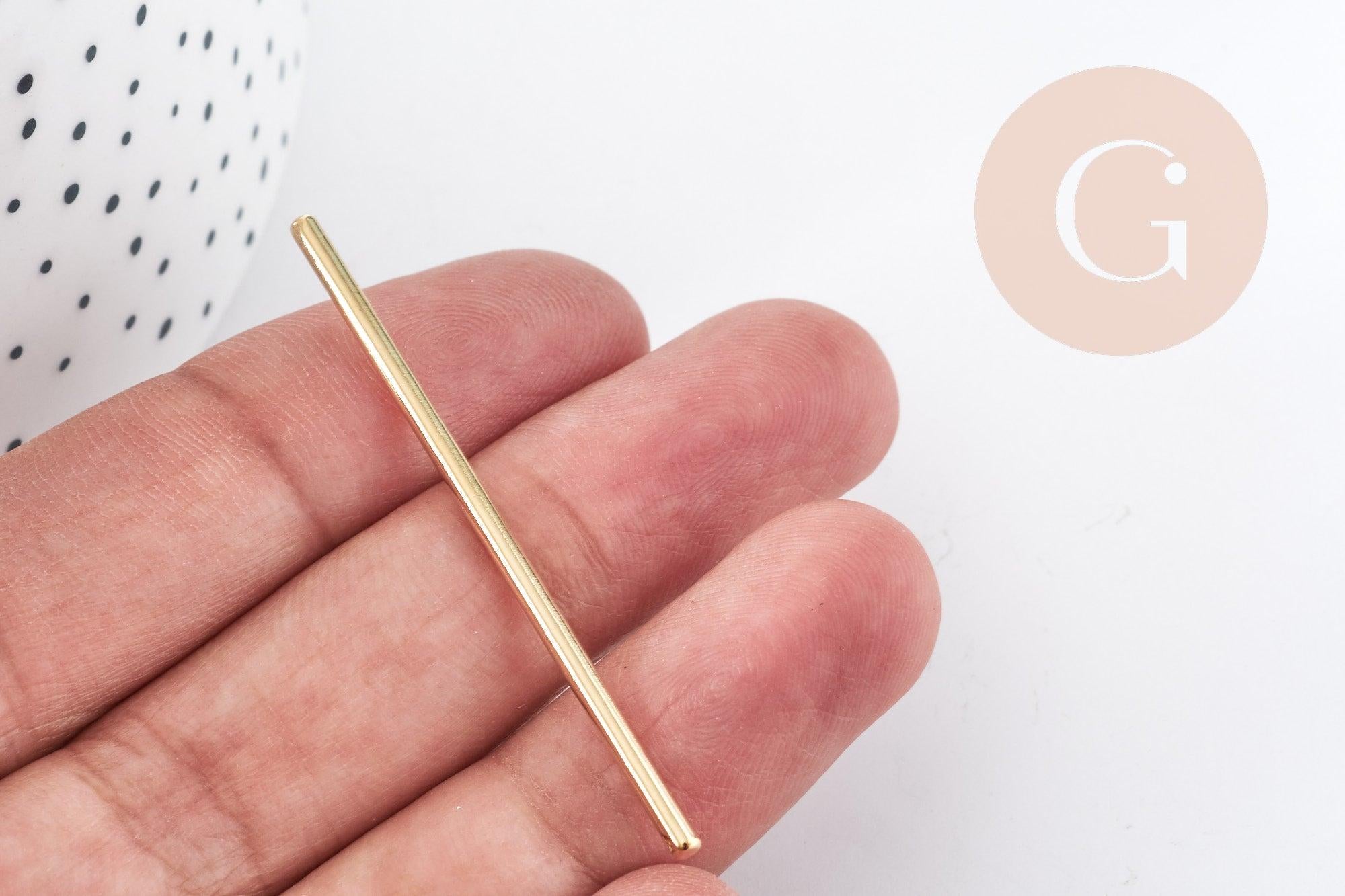 Este colgante de latón bañado en oro de 14K, en forma de barra redonda de 40 mm , es una pieza de joyería elegante y minimalista. Ideal para crear pendientes, collares o pulseras, encaja perfectamente en diseños modernos y refinados. Su baño de oro de 14 quilates garantiza un acabado refinado y duradero, resistente al deslustre.