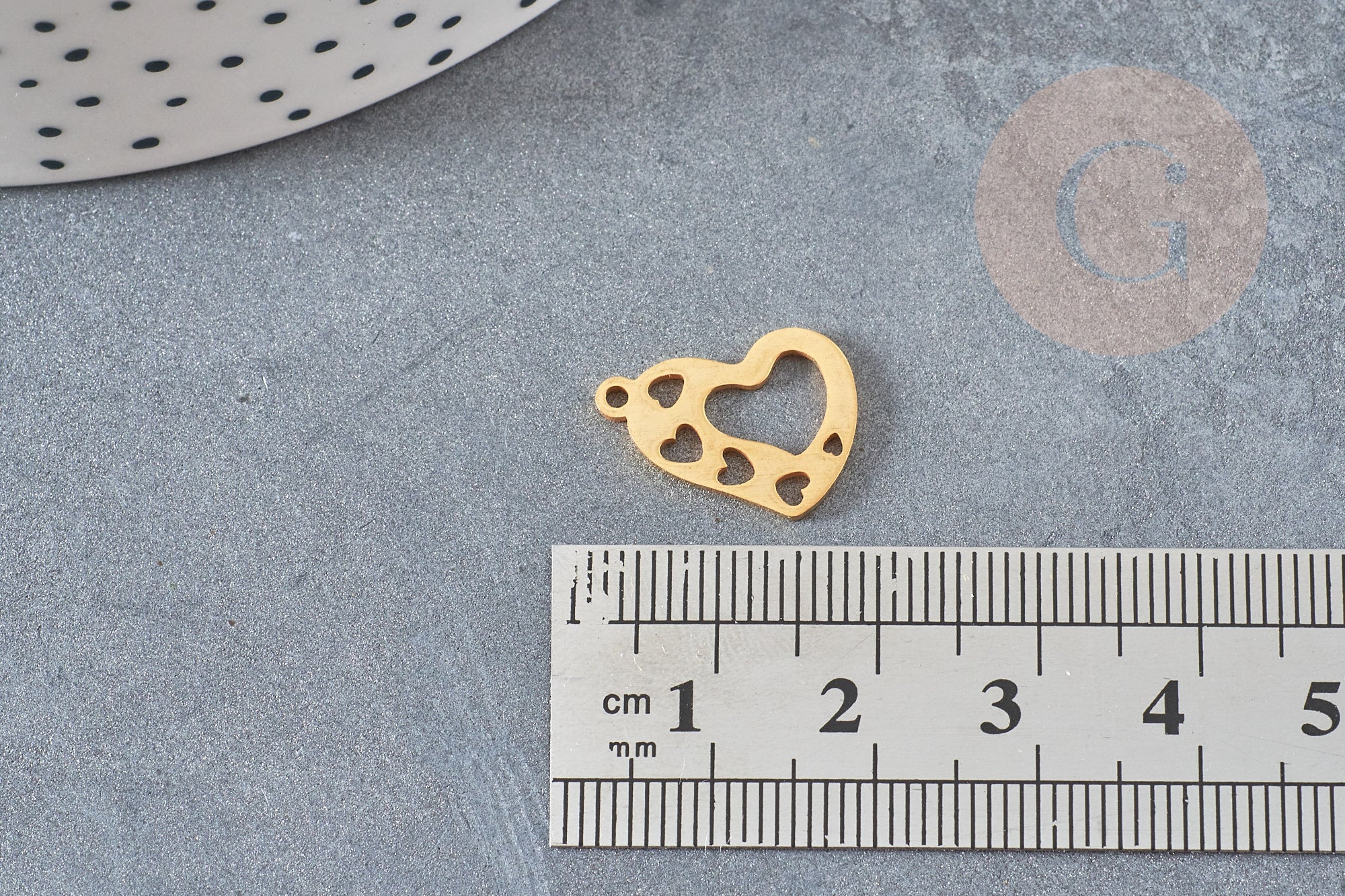 Colgante corazón ahuecado Acero inoxidable dorado, creación de joyería dorada, 16 mm, x1 G4830