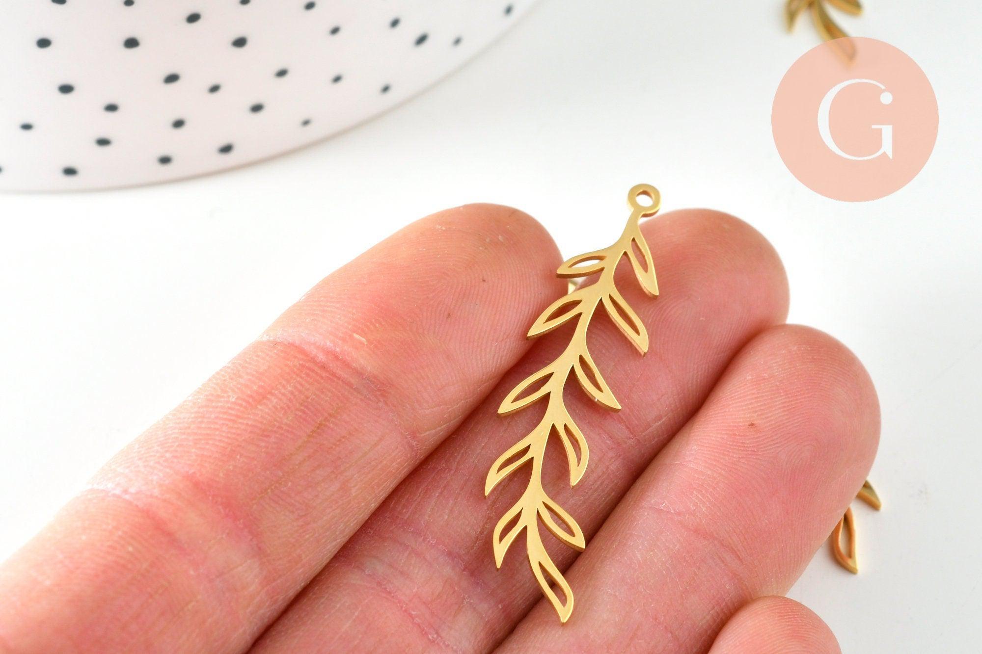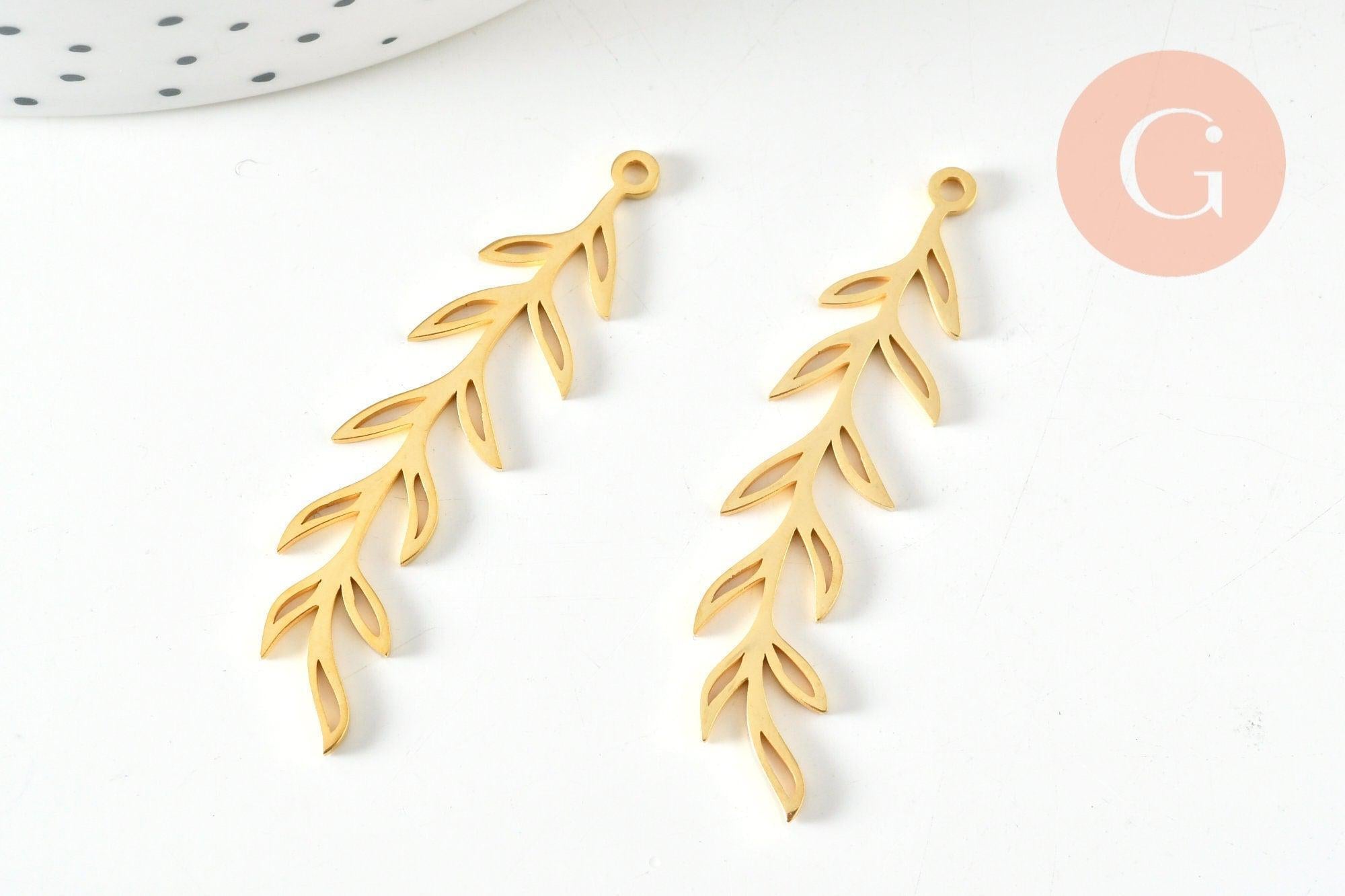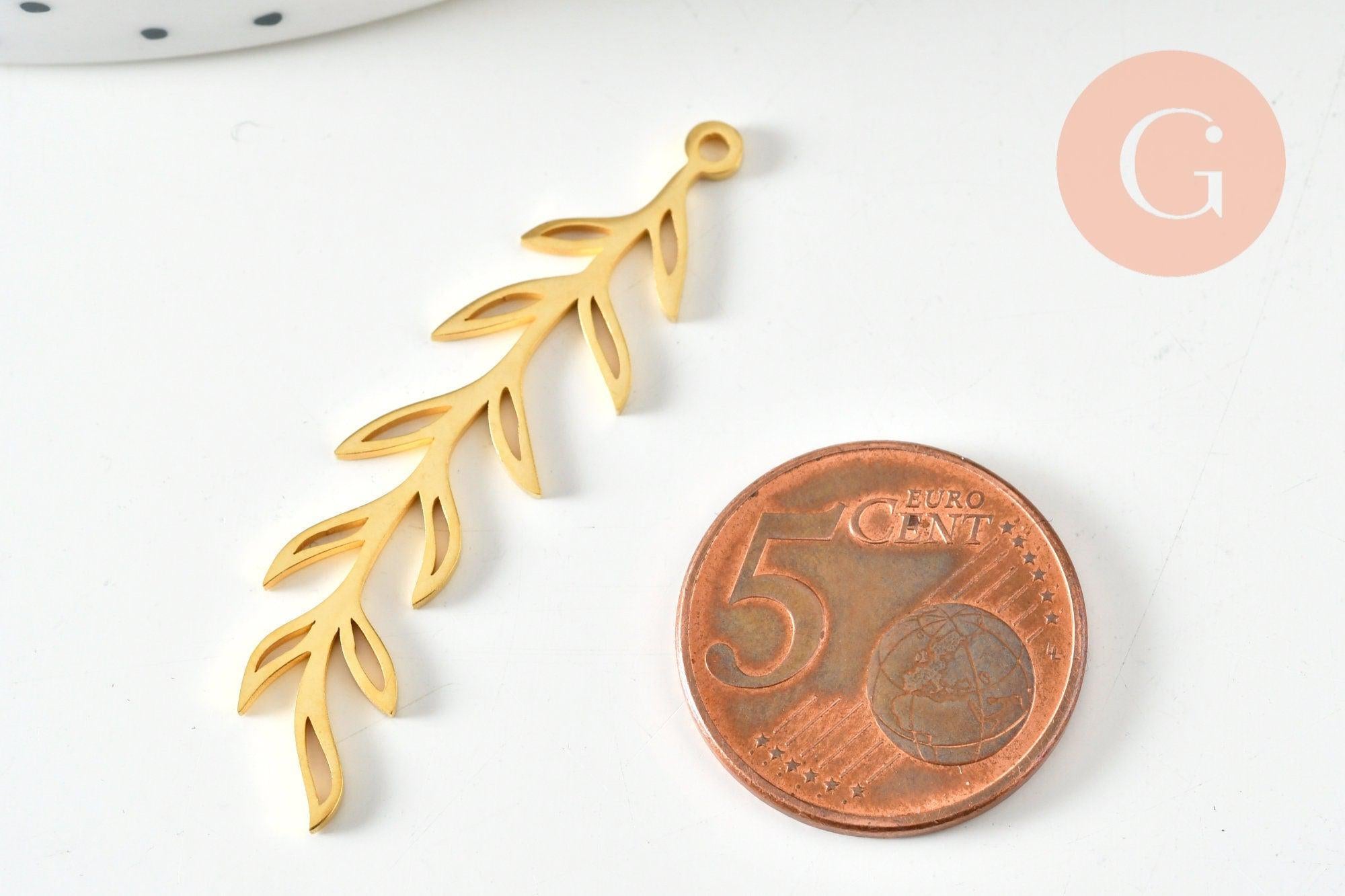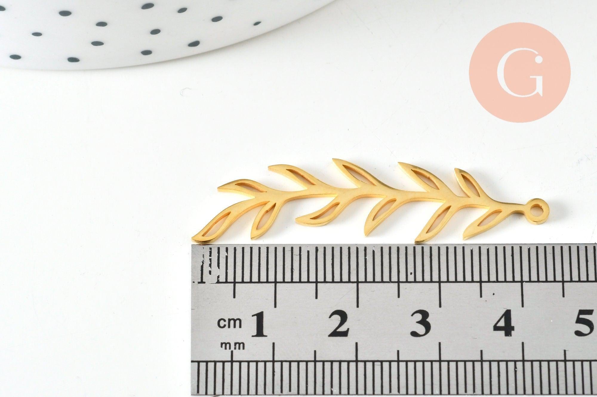 Colgante conector hoja de acero inoxidable dorado 44 mm, joya de acero hipoalergénico sin liberación de níquel, x1, G6338