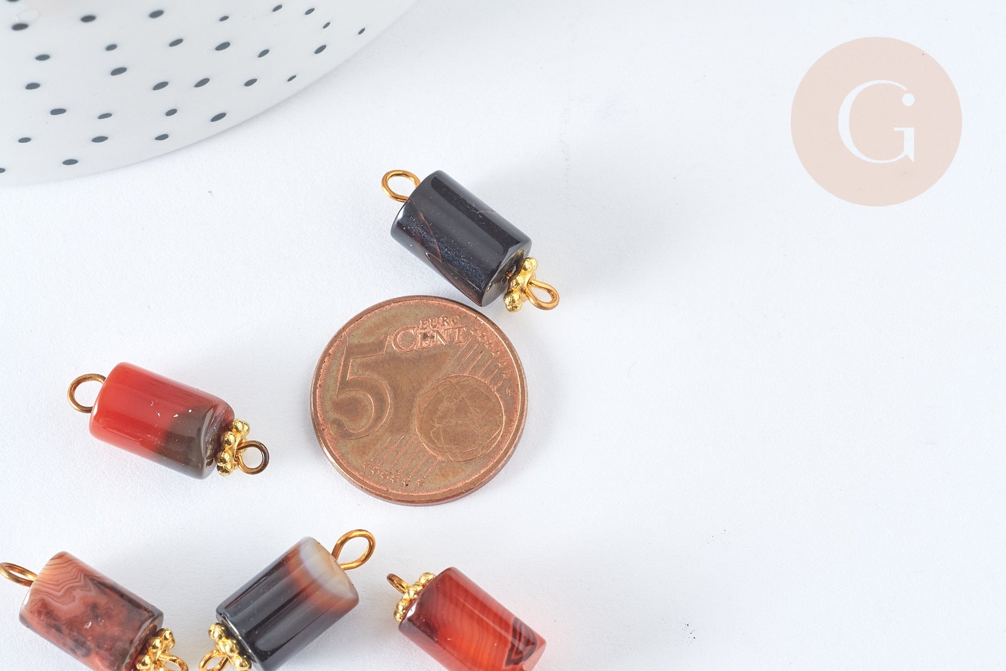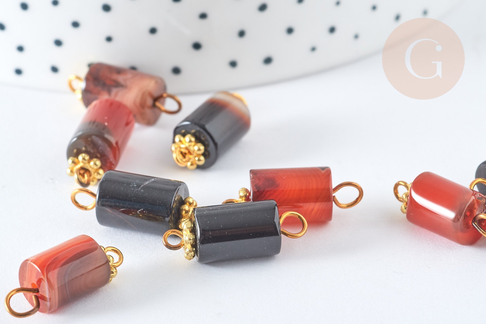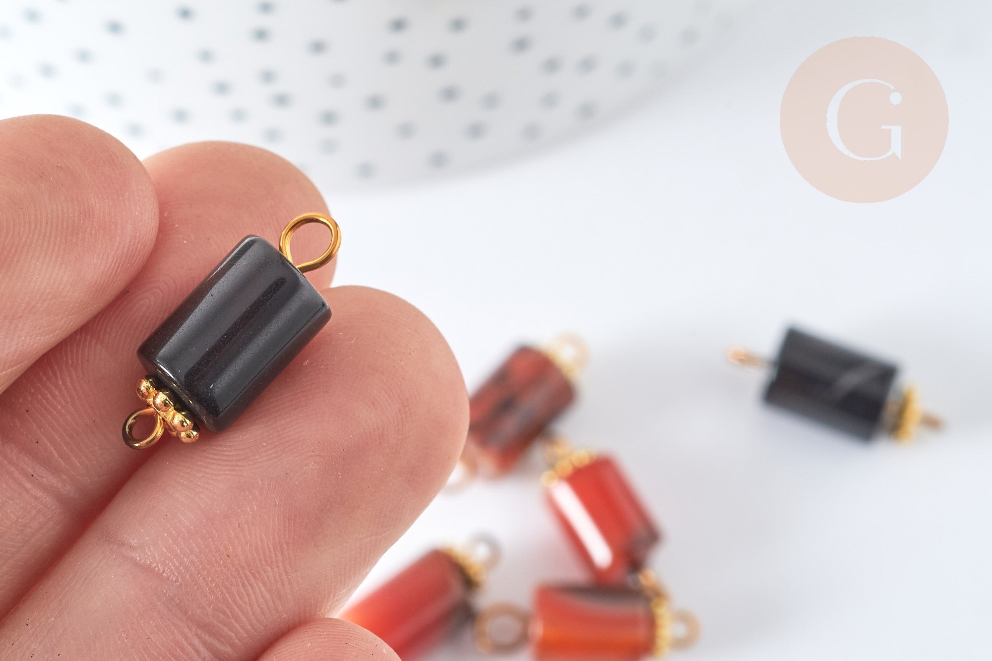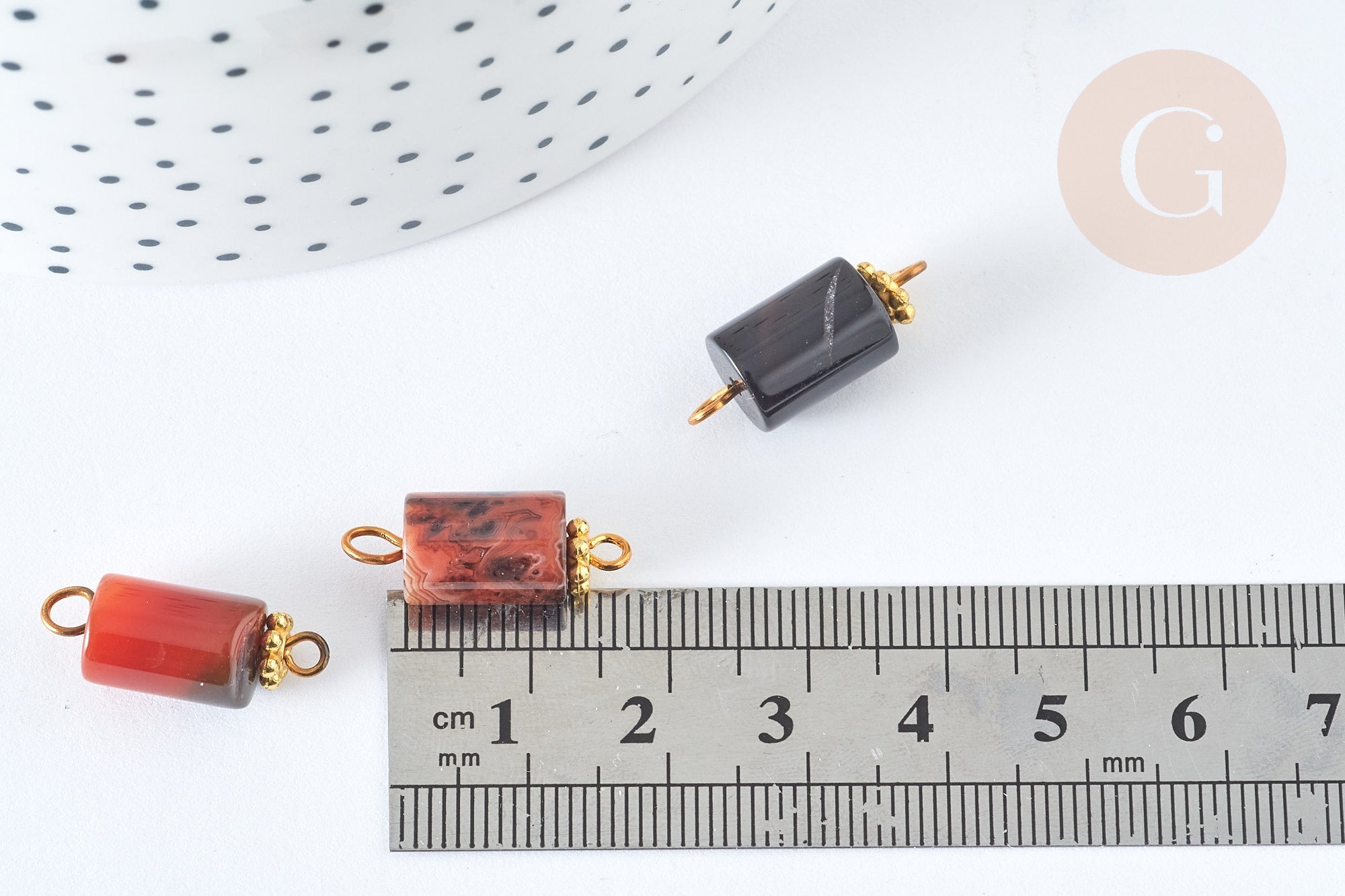Adopte este conector de ágata natural , una piedra fina. Además, está montado sobre dos bucles . en hierro dorado . ¡Estos te permitirán colgarlo donde quieras!
