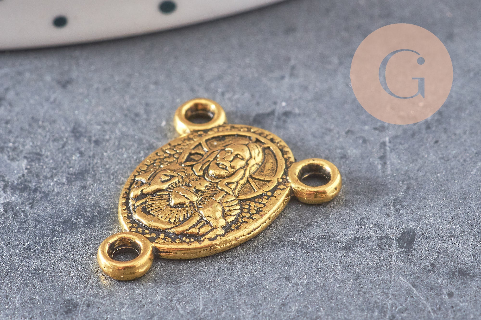 Una bonita medalla de conector dorado que representa a la Virgen.