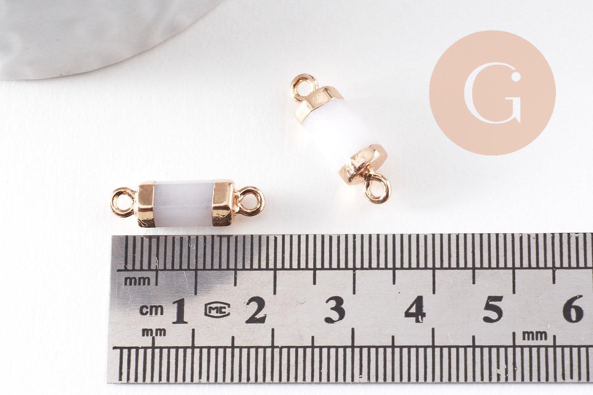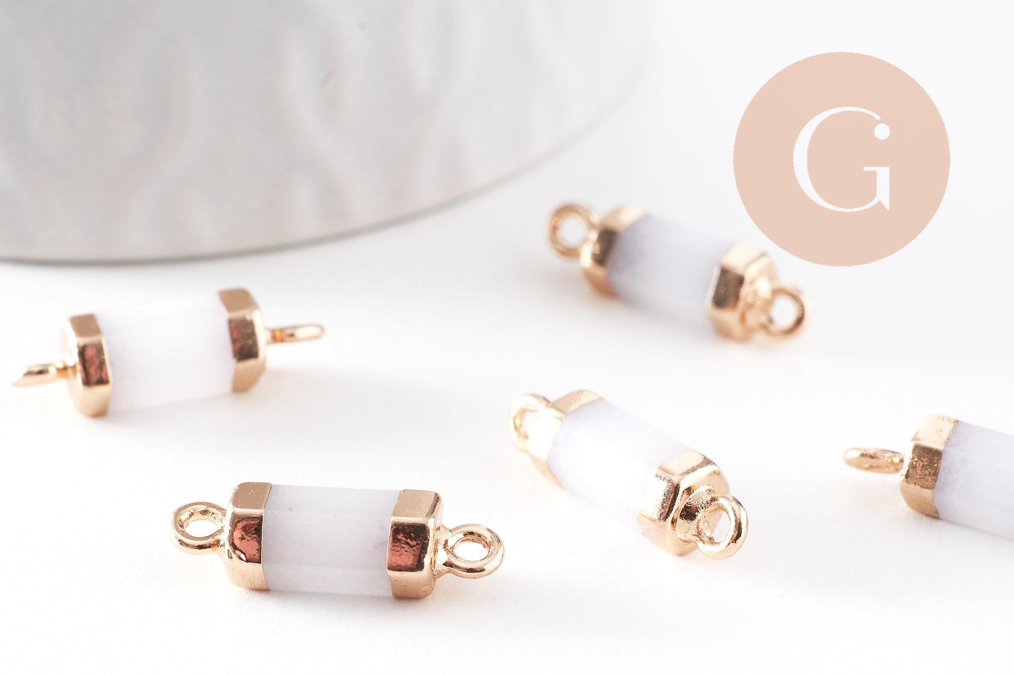 Pendentif connecteur tube jade naturel blanc tube fer doré 20mm, pendentif bijoux pierre, x1 (G9909)