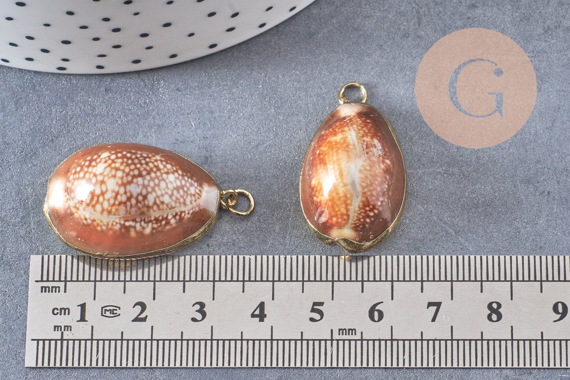 Colgante de concha dorada natural, colgante dorado, creación de joyas, joya de concha, concha natural, 28 mm (G0878)