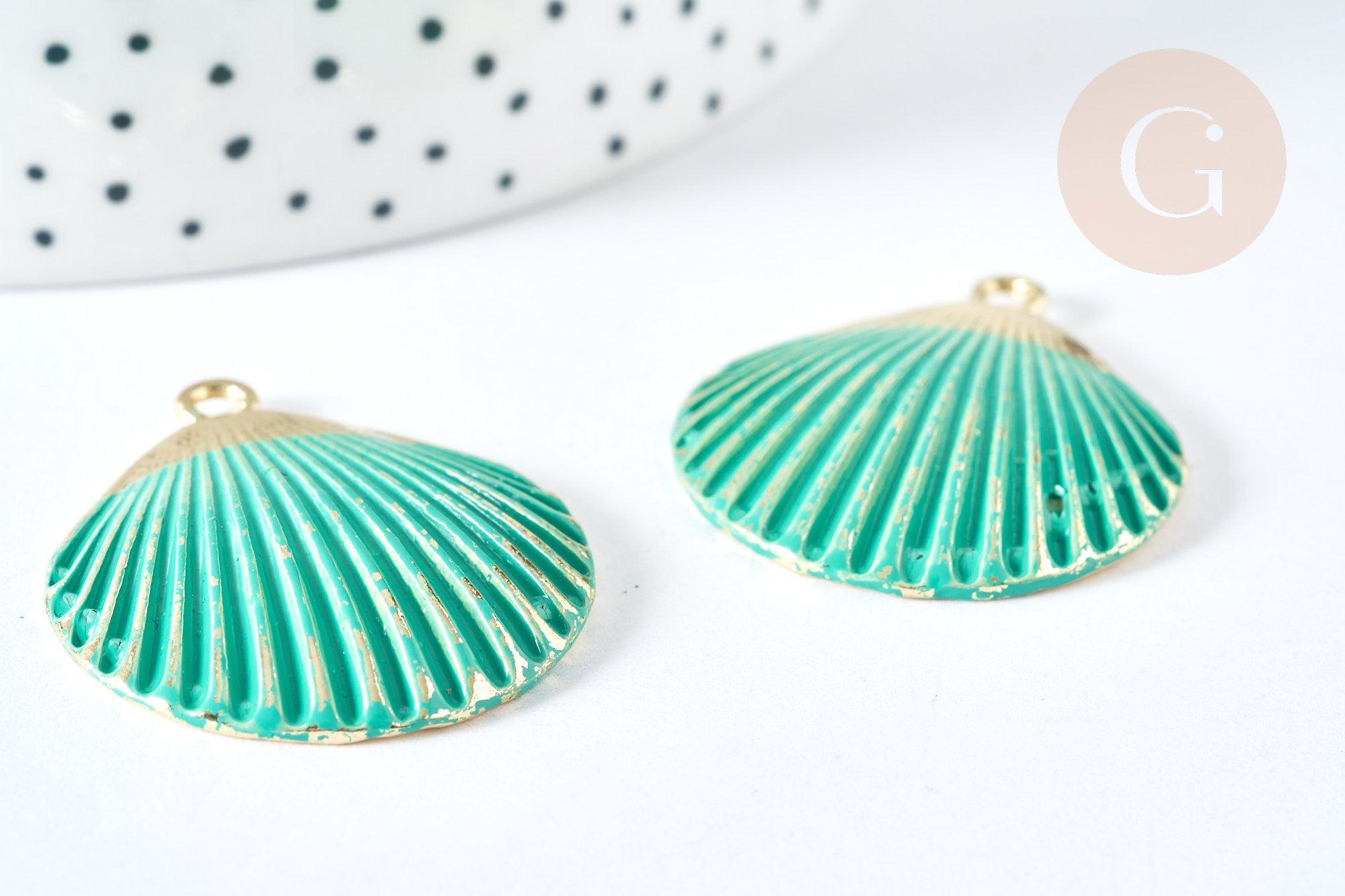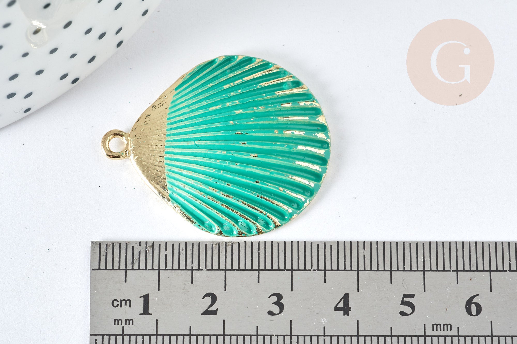 Para tus creaciones DIY de bisutería , adopta este adorable colgante de concha en zamac dorado y esmalte turquesa.