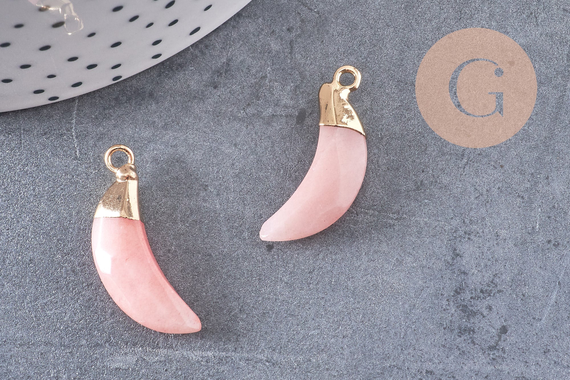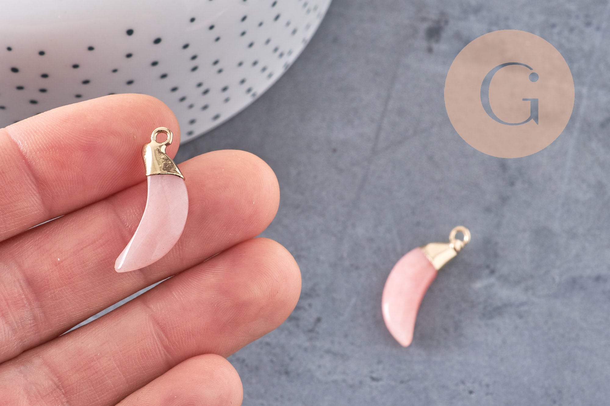 Colgante de cuerno de jade rosa, jade rosa, suministros creativos, colgante de joyería, colgante de piedra, jade natural, colgante de jade, 26 mm