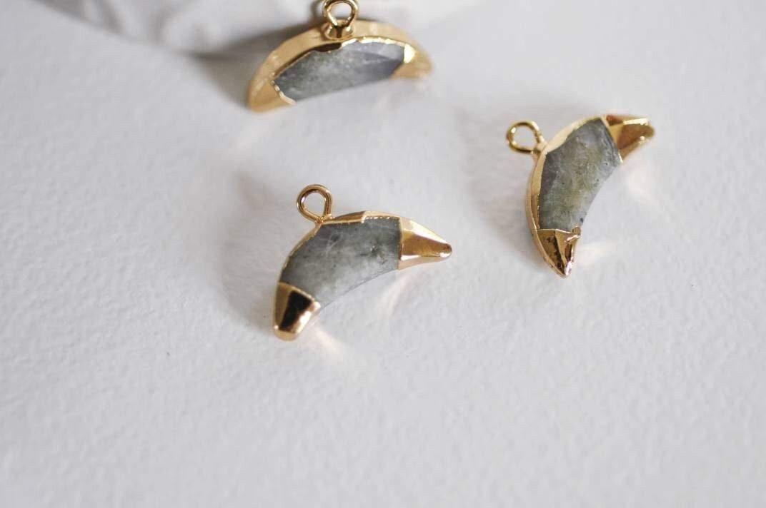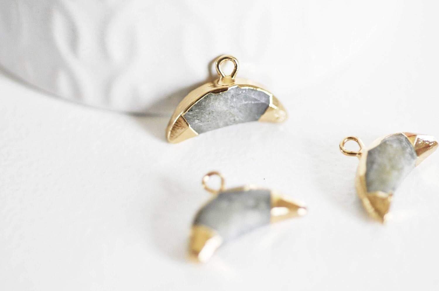 Colgante de media luna de labradorita dorada, suministros para manualidades, colgante de joyería, luna de labradorita, colgante de piedra, labradorita natural, 18 mm