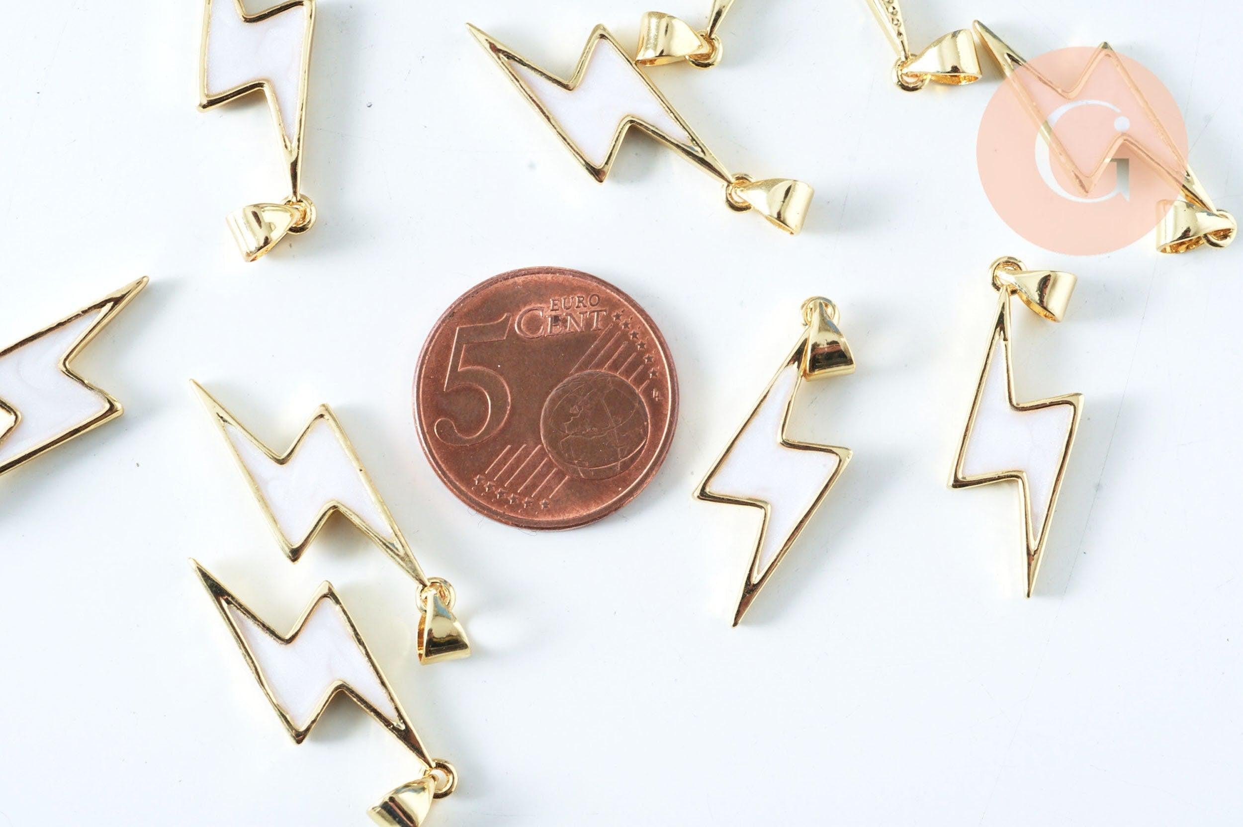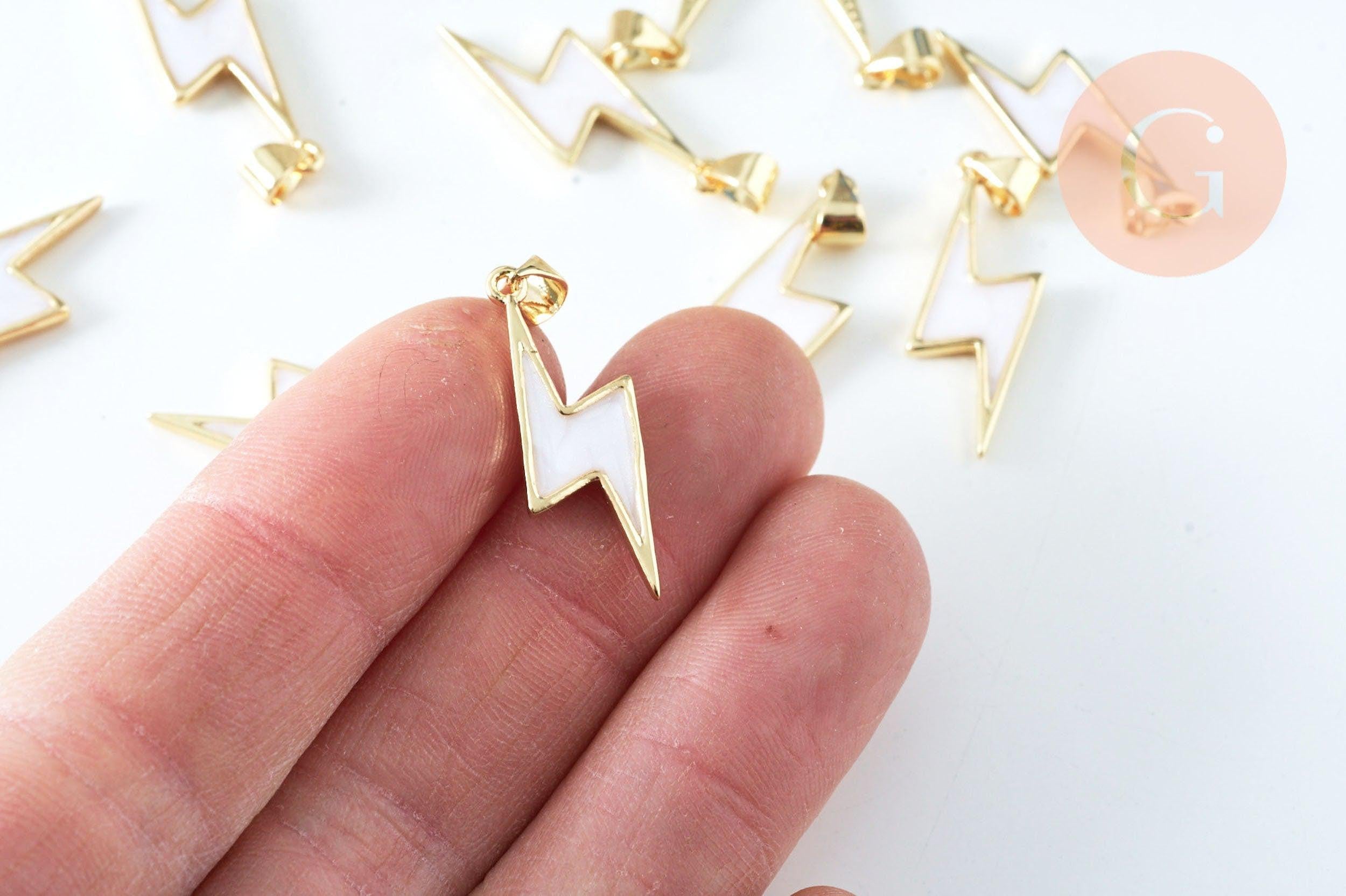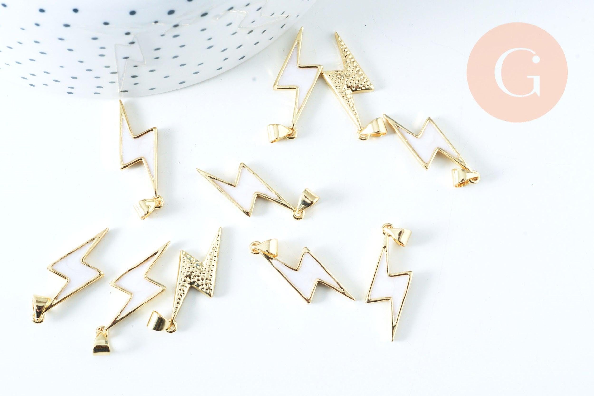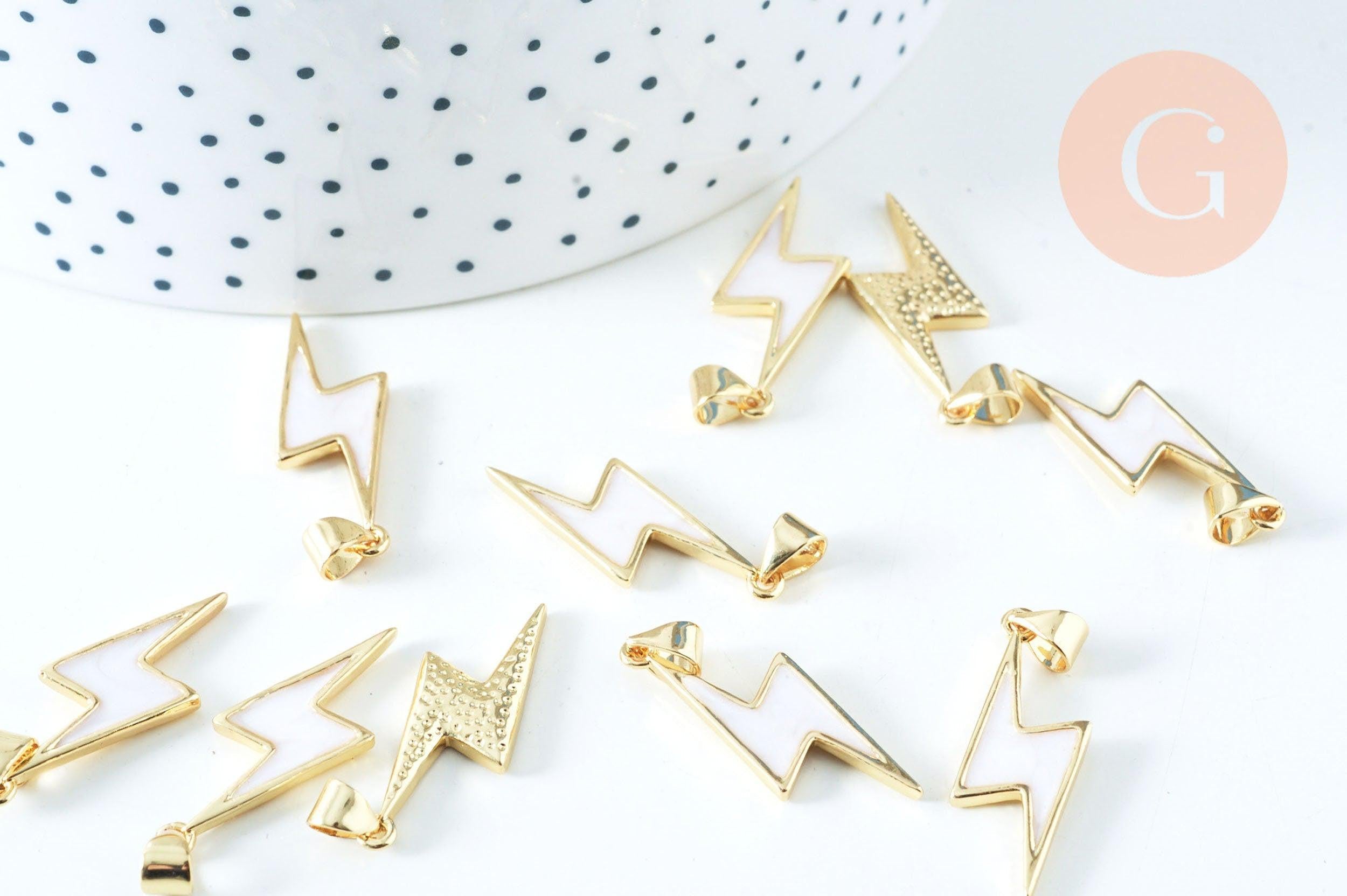 ¡Un colgante en forma de rayo de latón dorado cubierto de esmalte blanco! ¡Un magnífico colgante para crear joyas diminutas y elegantes!