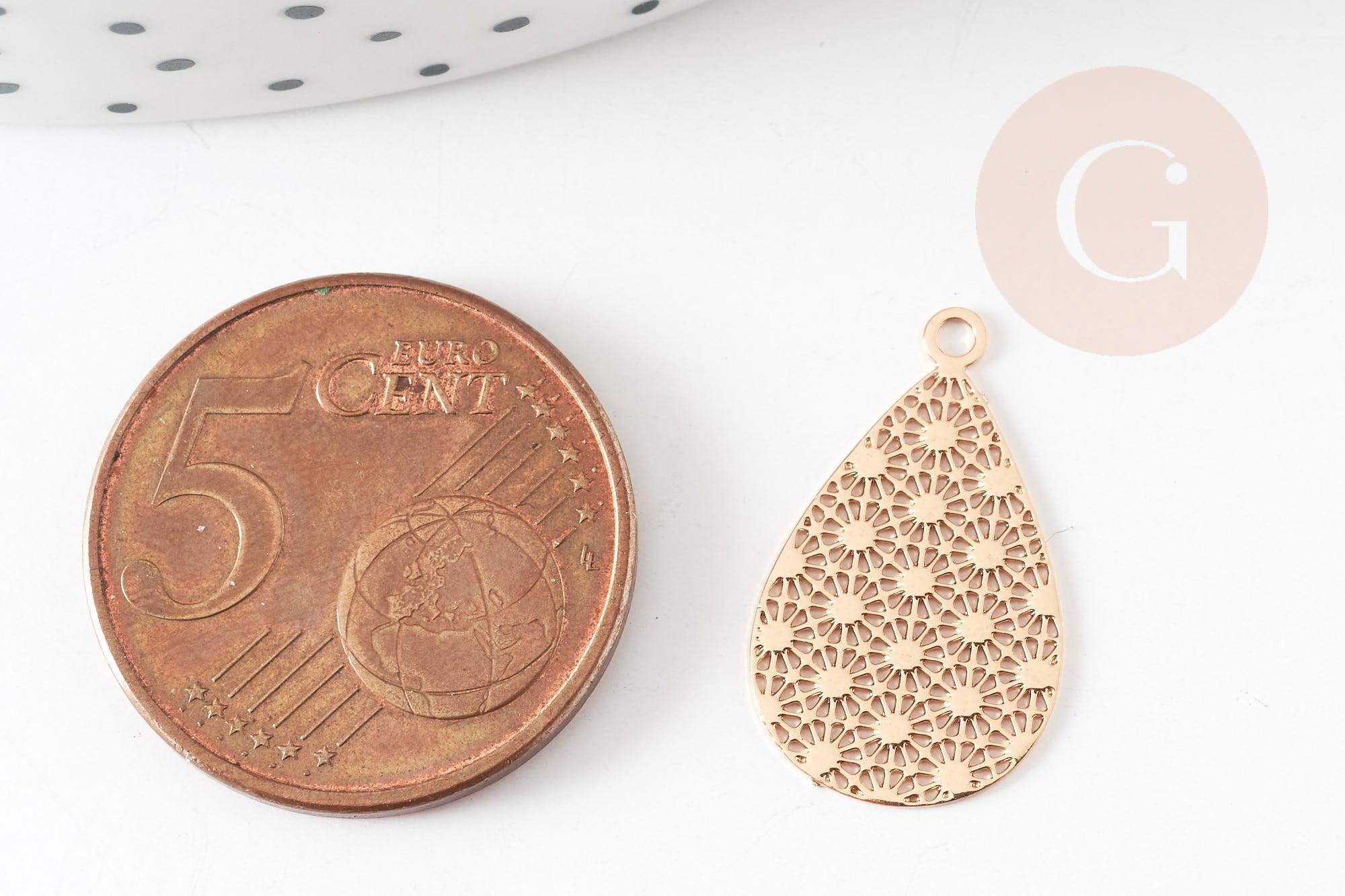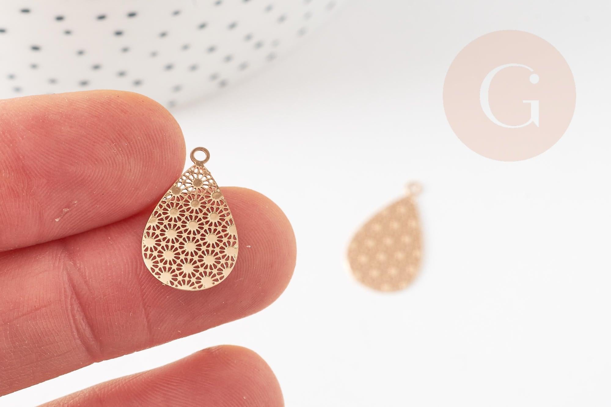 Descubre nuestros colgantes con estampado en forma de lágrima con motivo geométrico en latón bañado en oro , de 19,5 mm. Estos colgantes con su diseño delicado y ligero aportarán un toque de elegancia geométrica a tus creaciones de joyería.