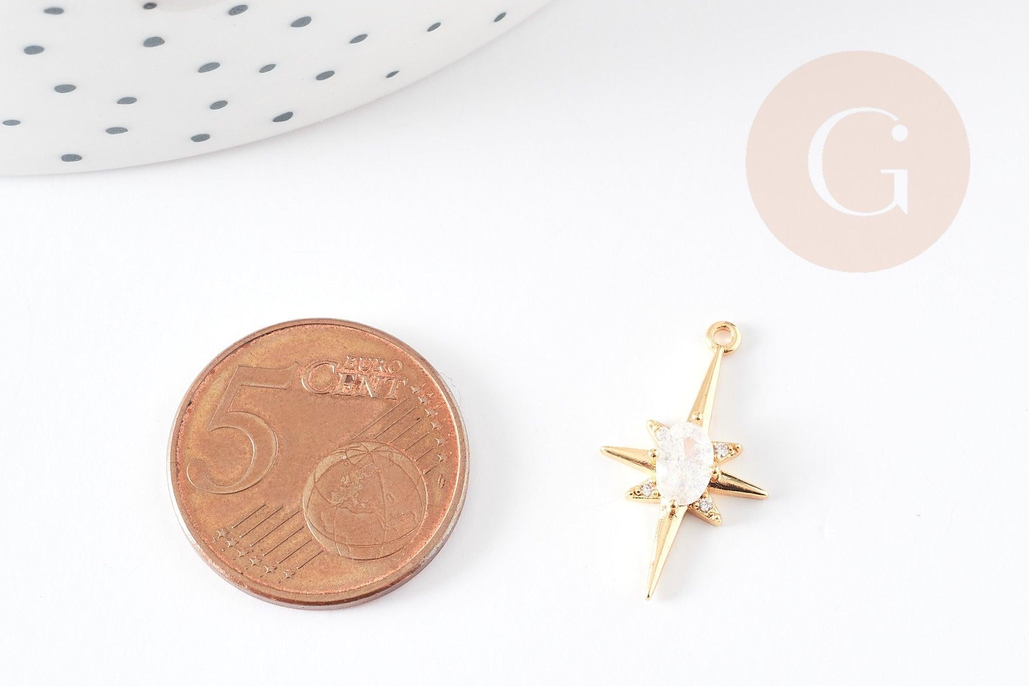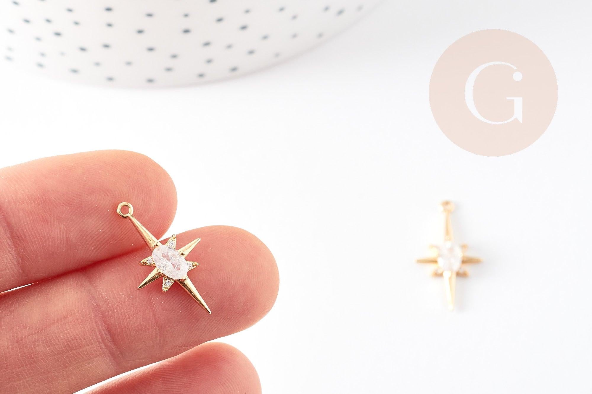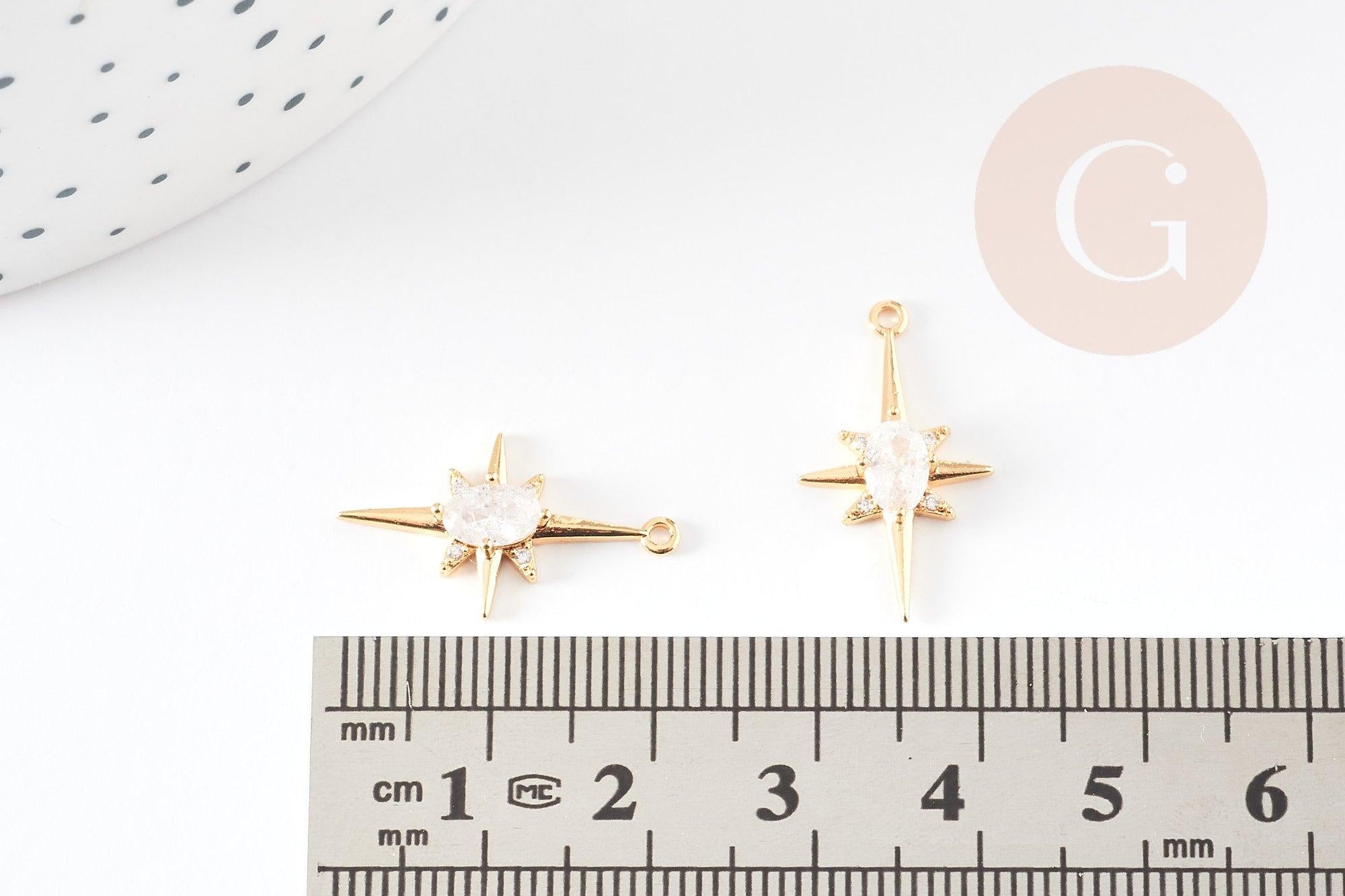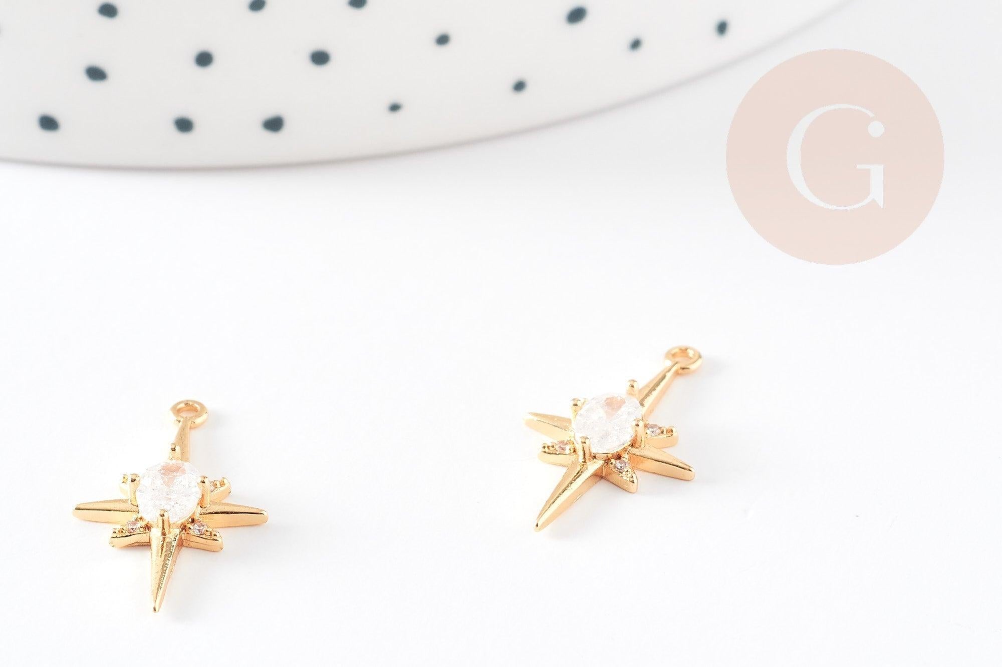 Colgante estrella de circonio de latón dorado de 18K, colgante dorado, amuleto de la suerte, joyería de constelaciones, creación de joyas, 21.5mm, x1 G5246