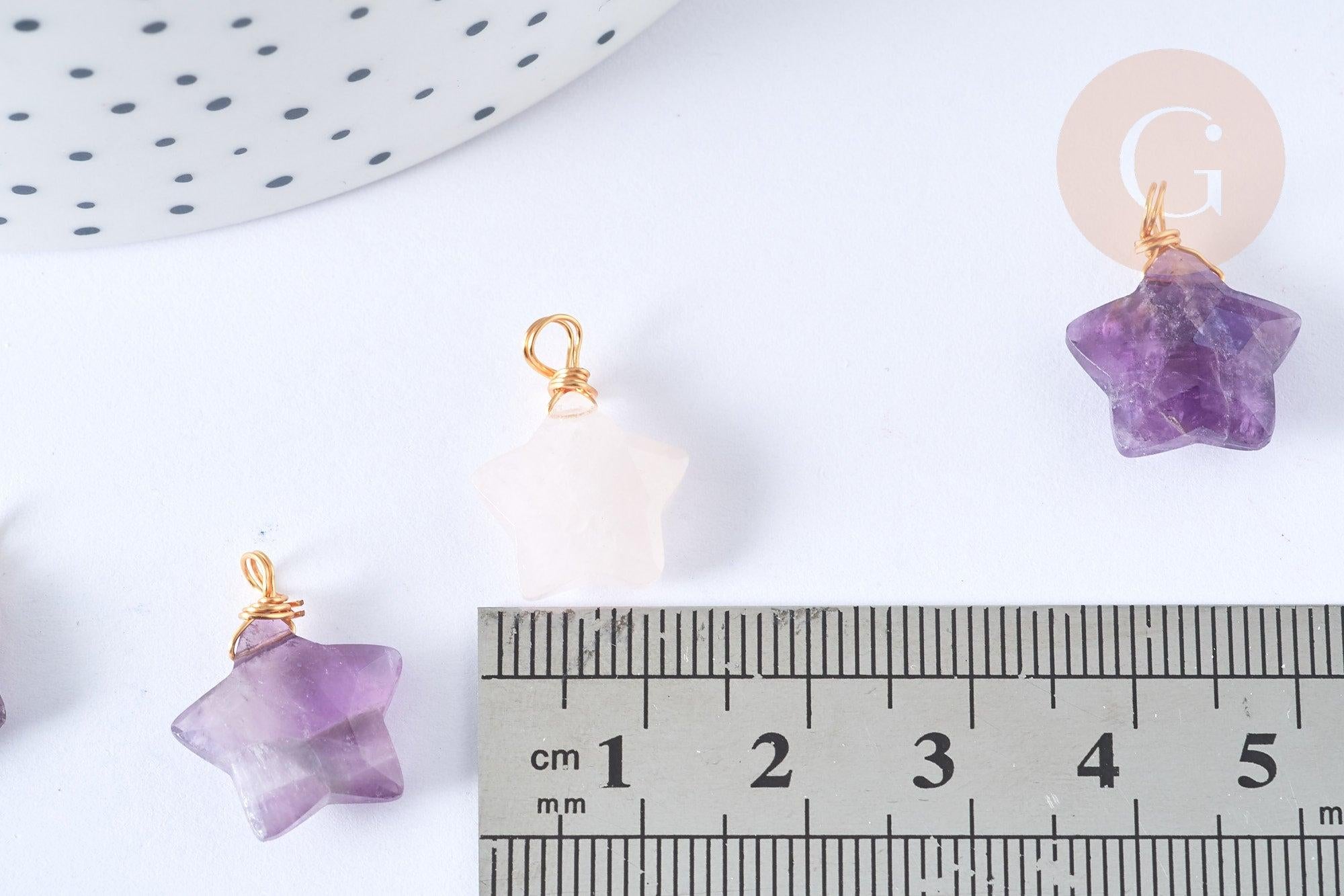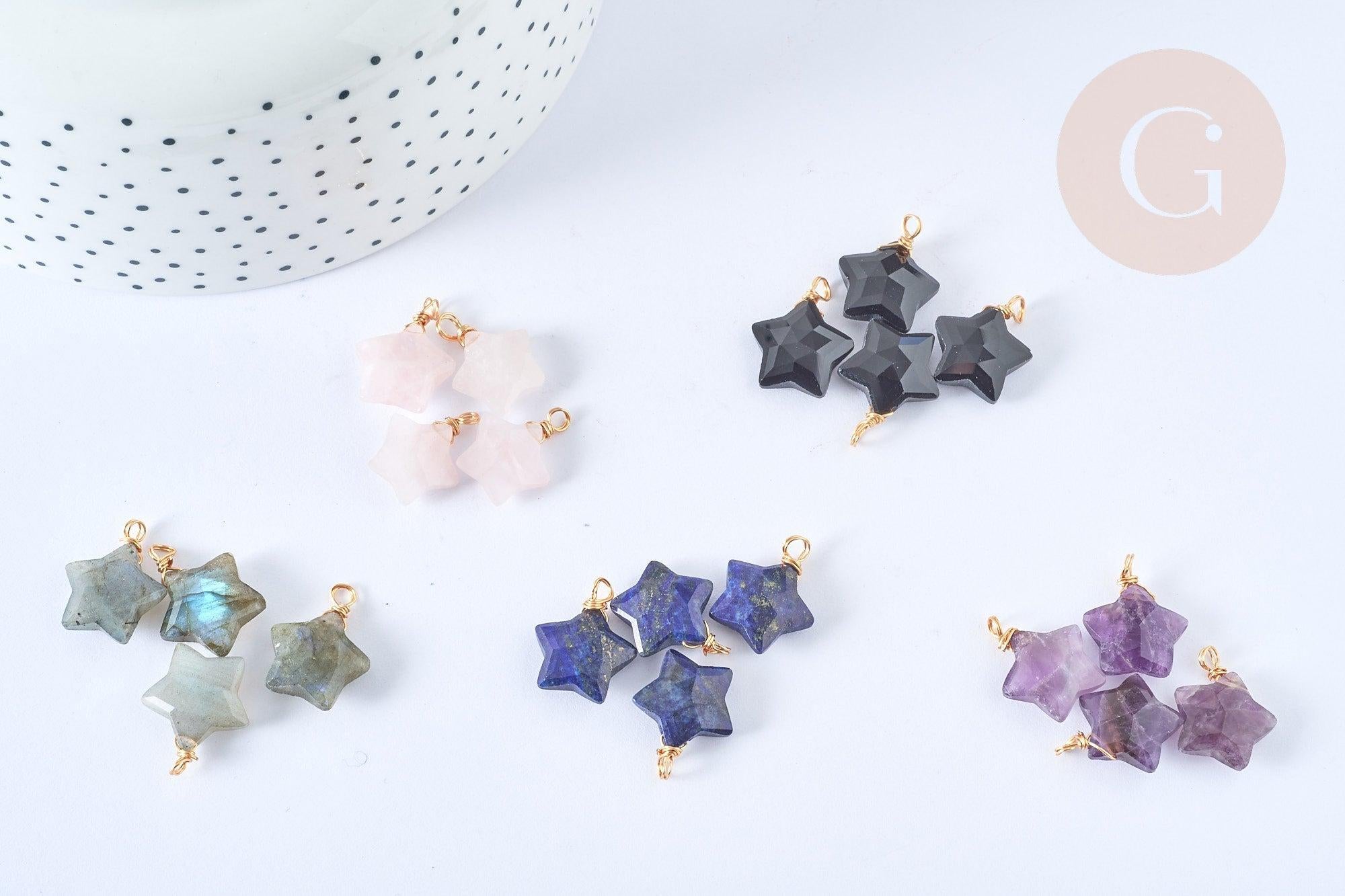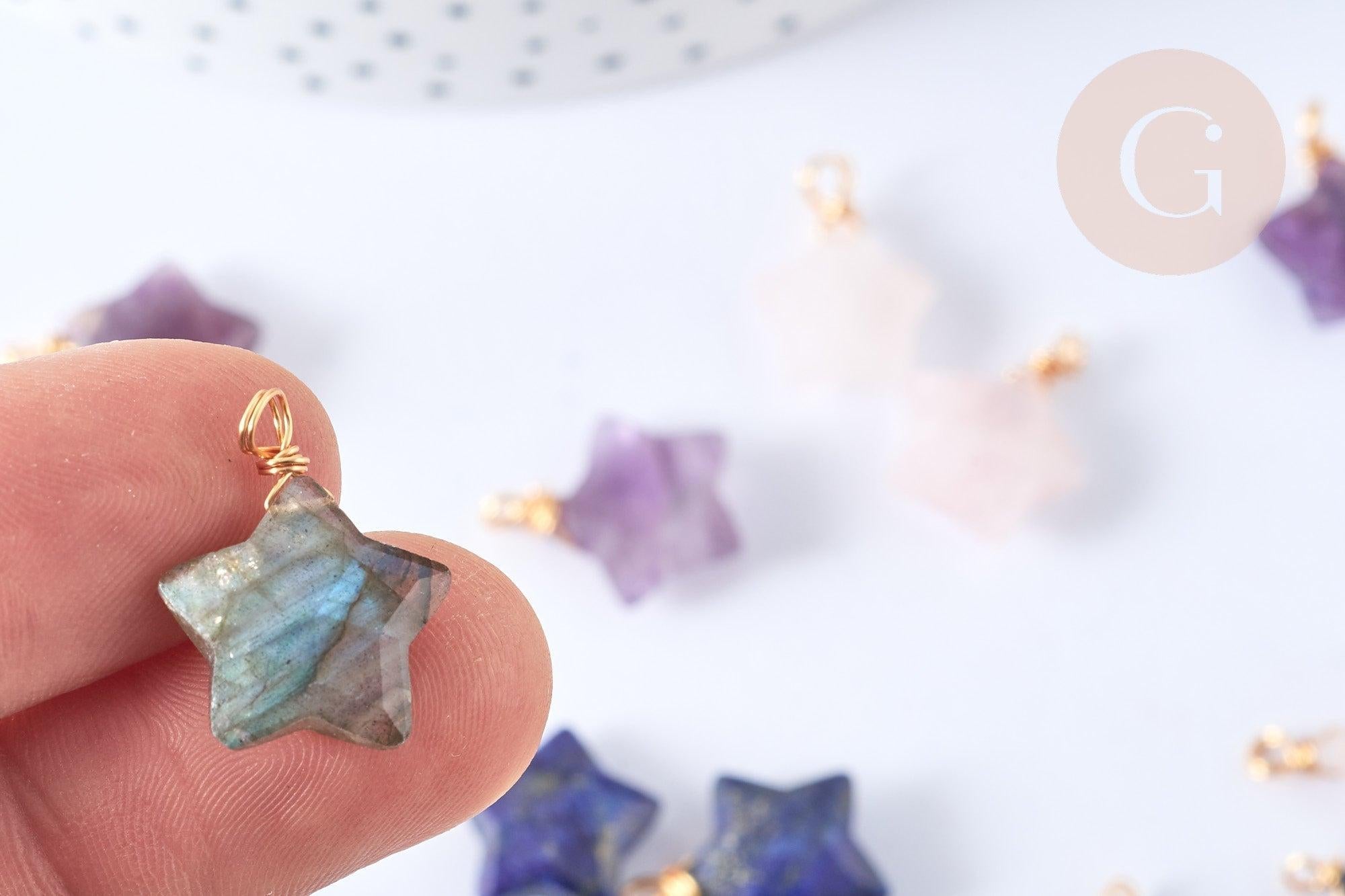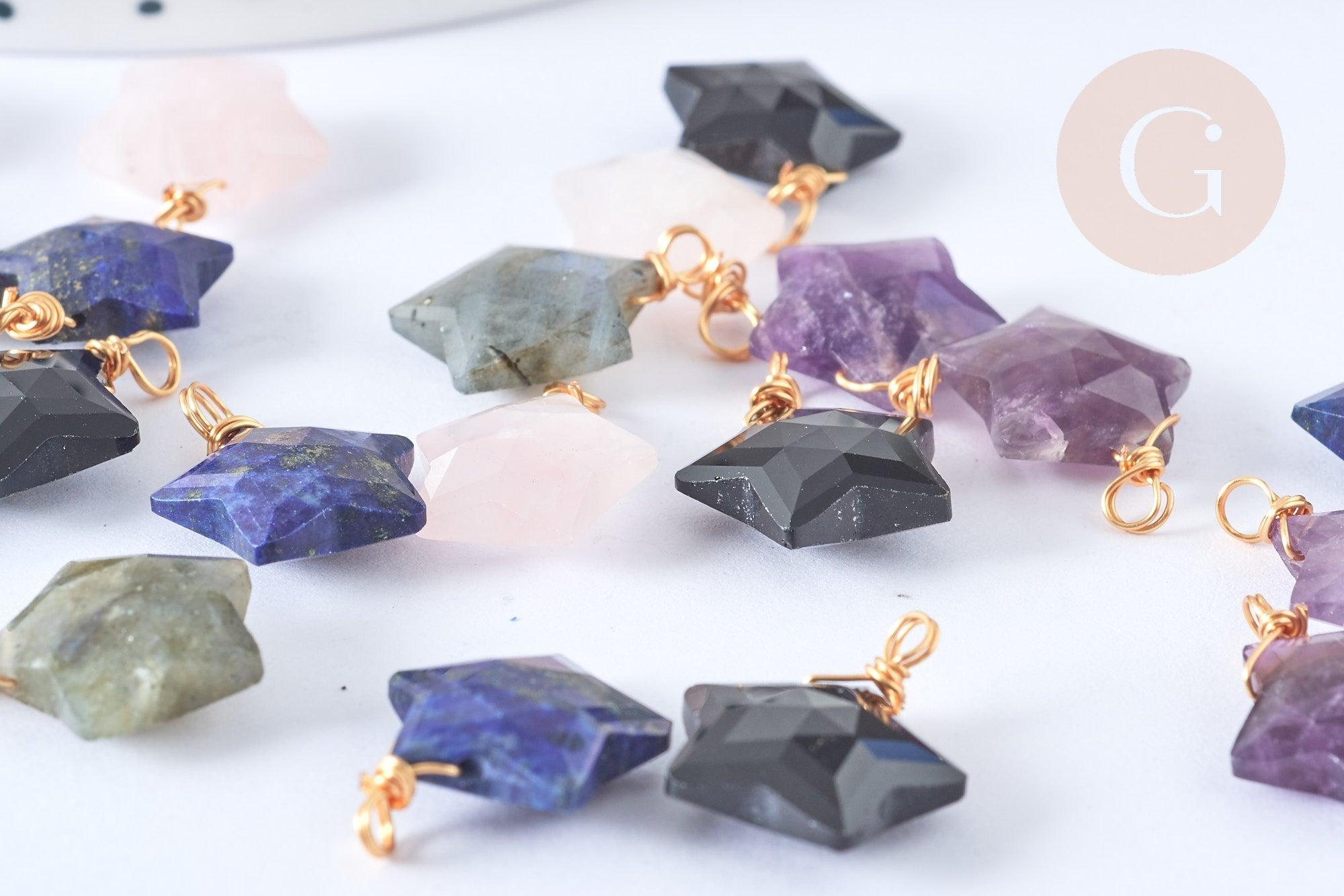 Déjate seducir por este colgante de estrella de piedra natural tallada , montado sobre un soporte de latón dorado. Elegante y simbólico, será perfecto para todas tus creaciones DIY: collares de amuletos de la suerte, pendientes, talismanes o collares espirituales.