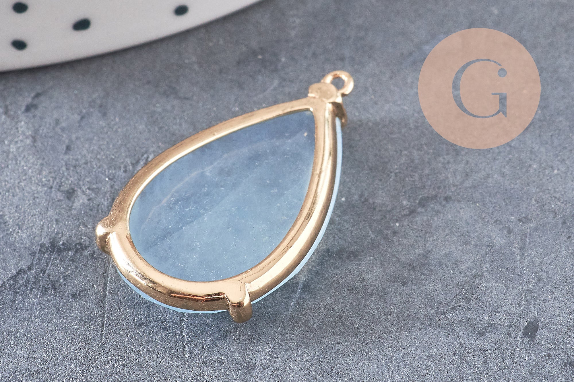 Colgante gota de ágata azul claro con soporte dorado, colgante de piedra, ágata natural, ágata azul, creación de joyas, piedra natural, 32mm, x1 G3058