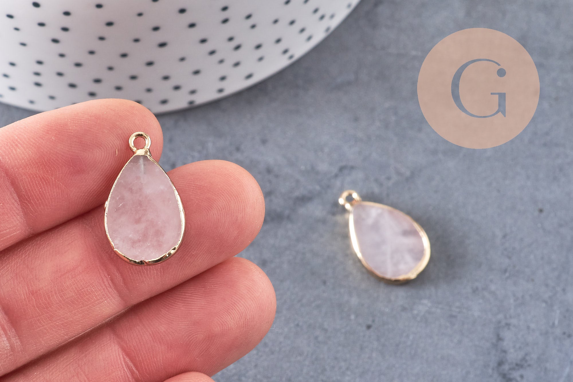 Colgante gota de cuarzo rosa, colgante para joyería, colgante de piedra, piedra natural, colgante rosa, cuarzo rosa natural, 22mm, G3107
