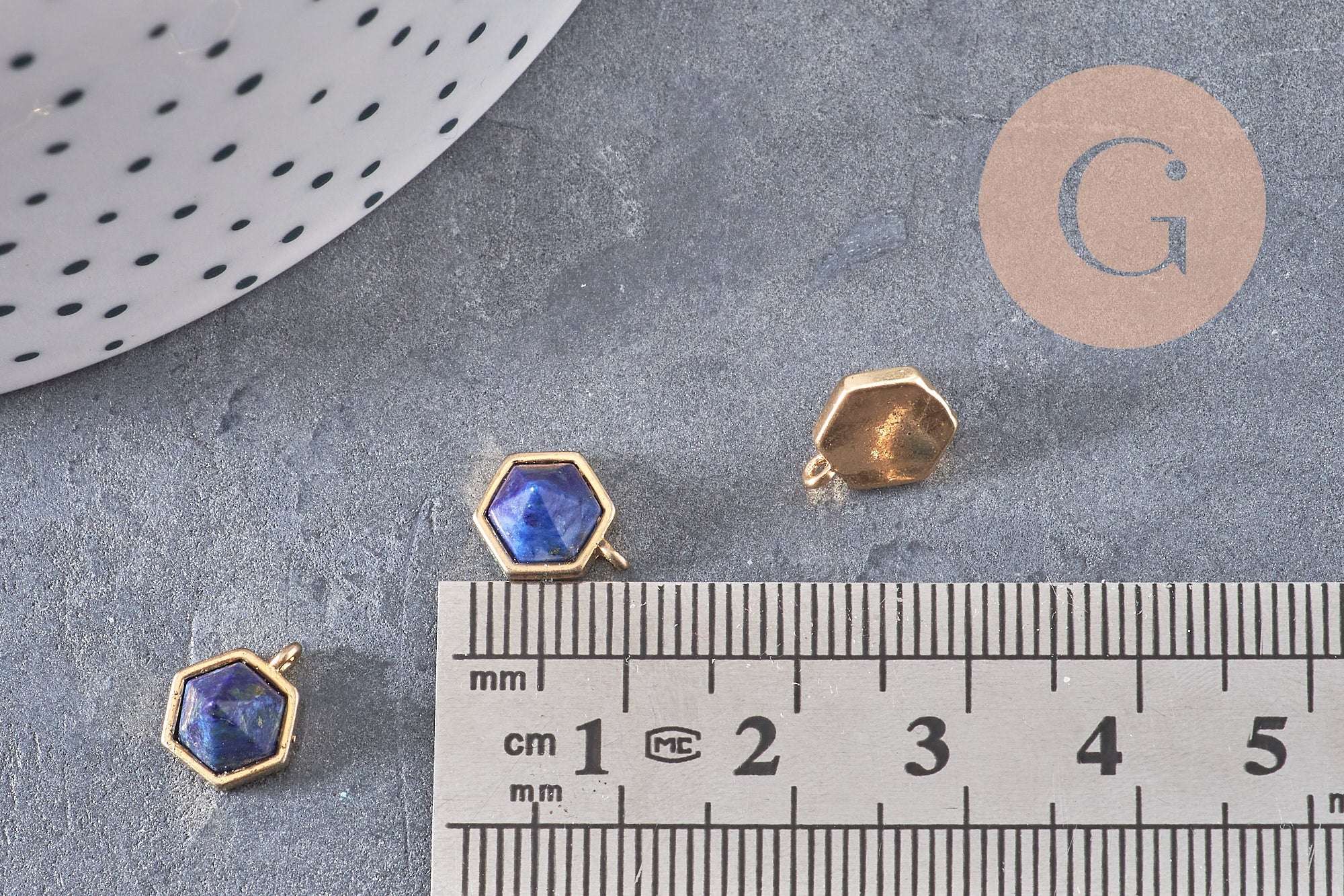 Déjese seducir por este mini colgante hexagonal de lapislázulis natural para crear joyas bohemias chic muy de moda.