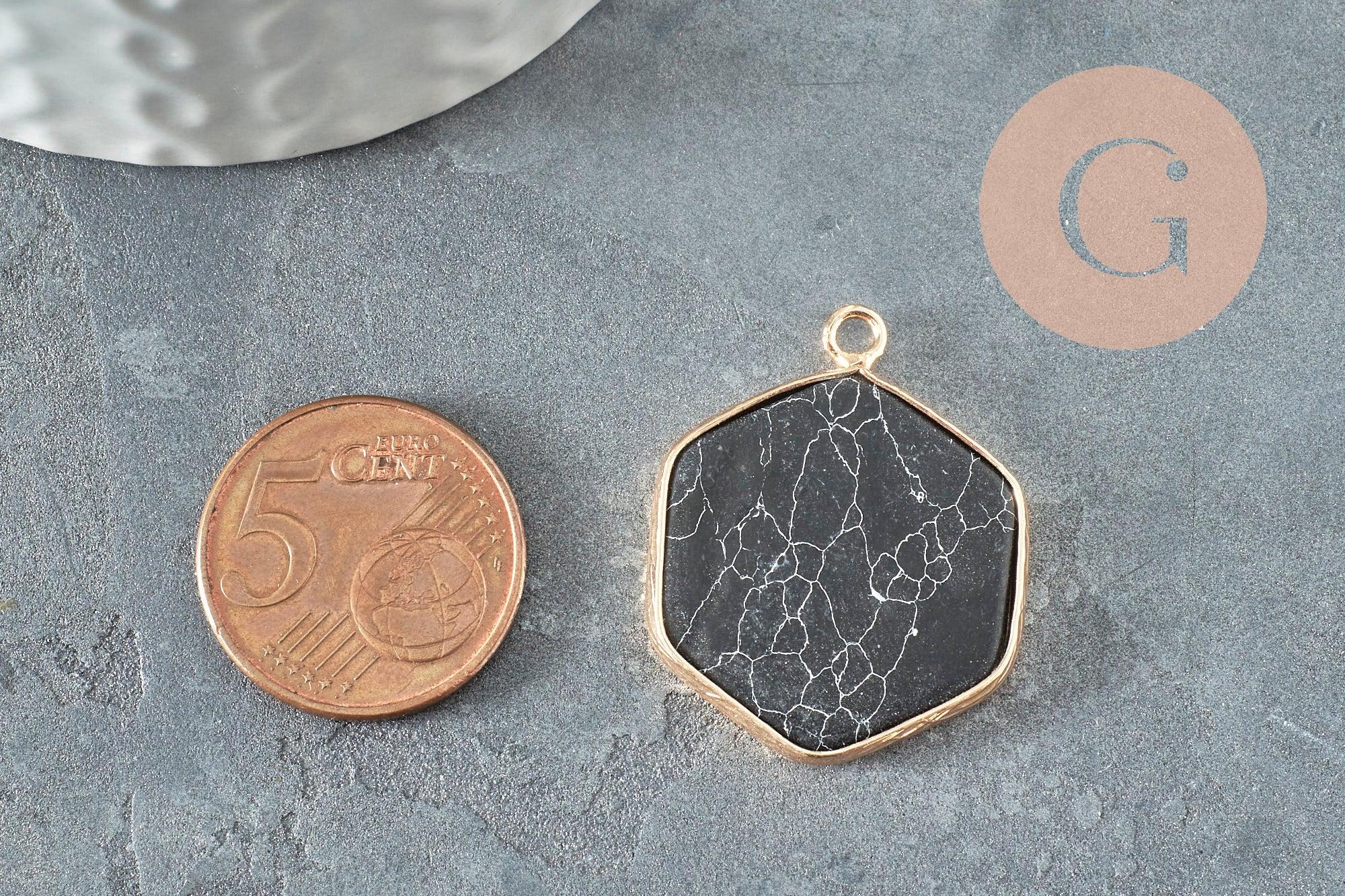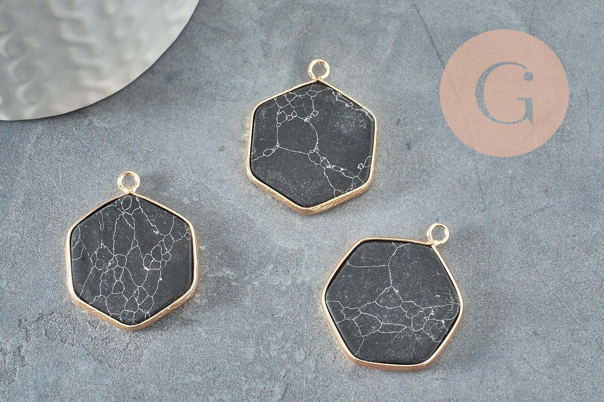 Colgante hexagonal turquesa jaspeado, colgante para joyería, colgante de piedra, piedra sintética, 30-31mm, x1 G3049