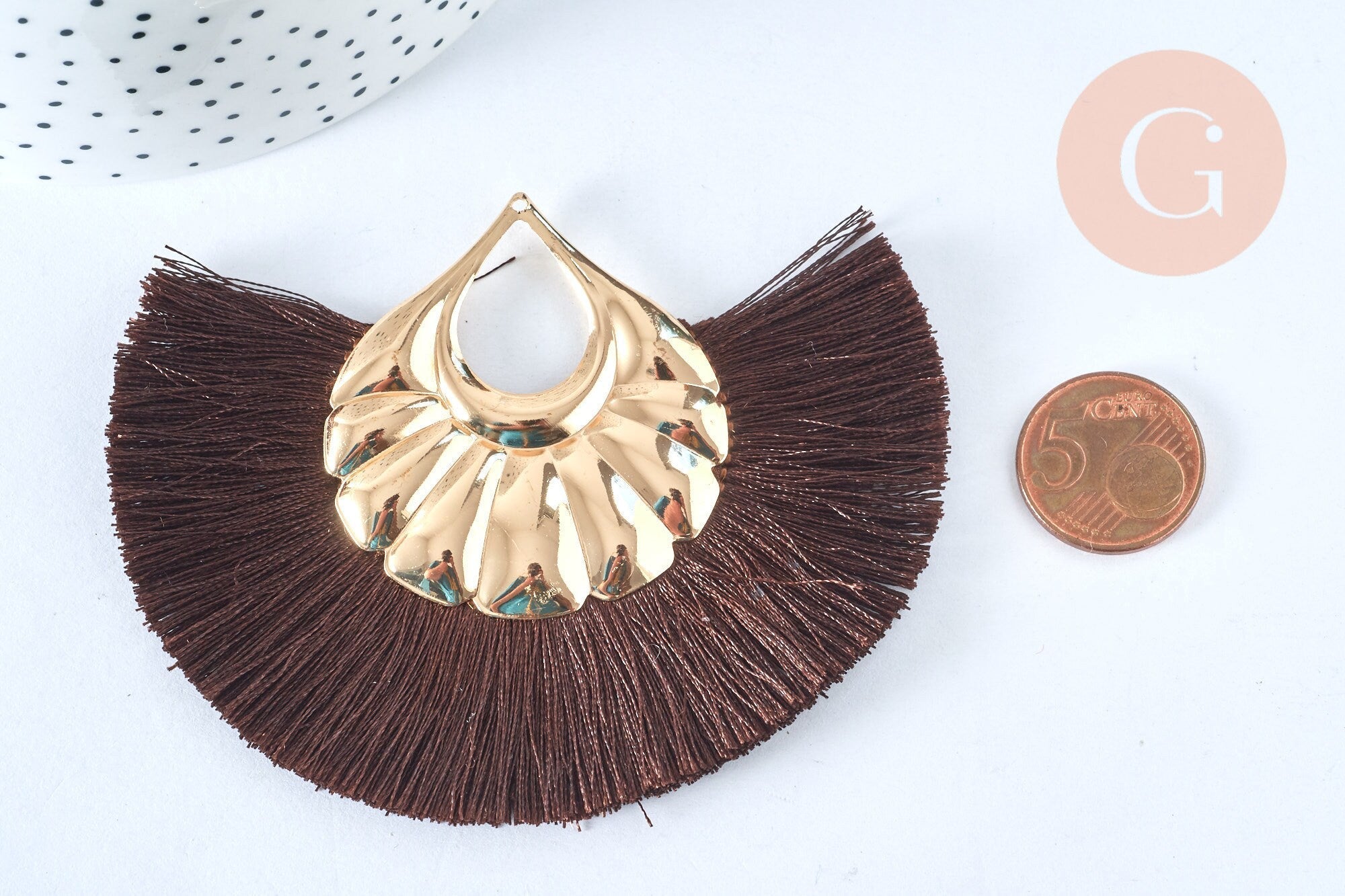 EP - Colgante grande de pompón de alambre marrón dorado con soporte dorado, colgante de alambre sobre soporte dorado, 85-92 mm, x 2, G4892