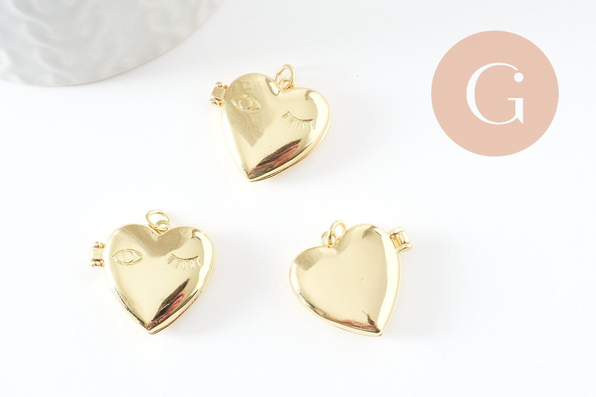 Colgante con medallón de corazón contemporáneo Medallón de latón chapado en oro de 18 quilates 21-22 mm, colgante para portafotos x1 G9549