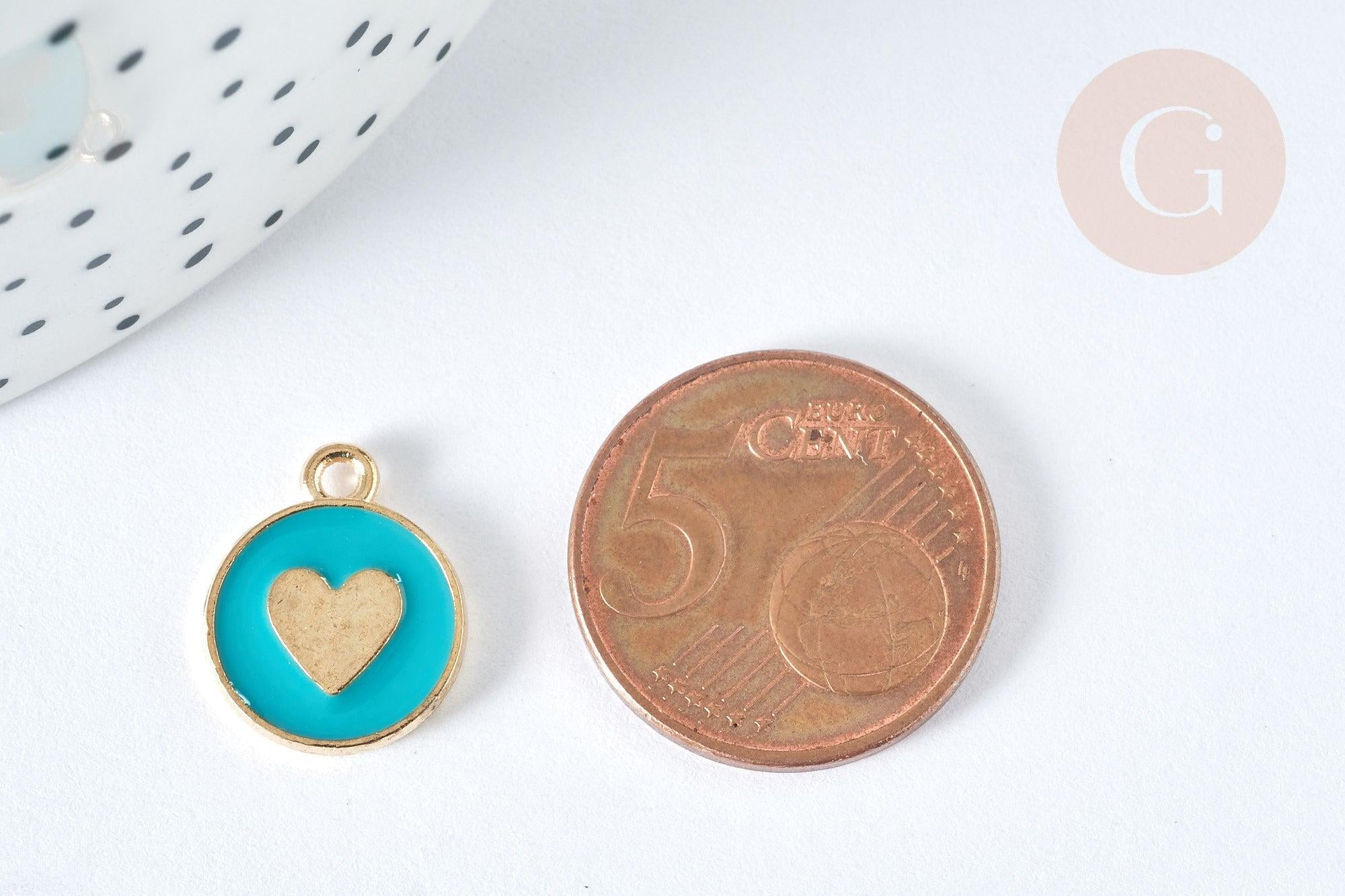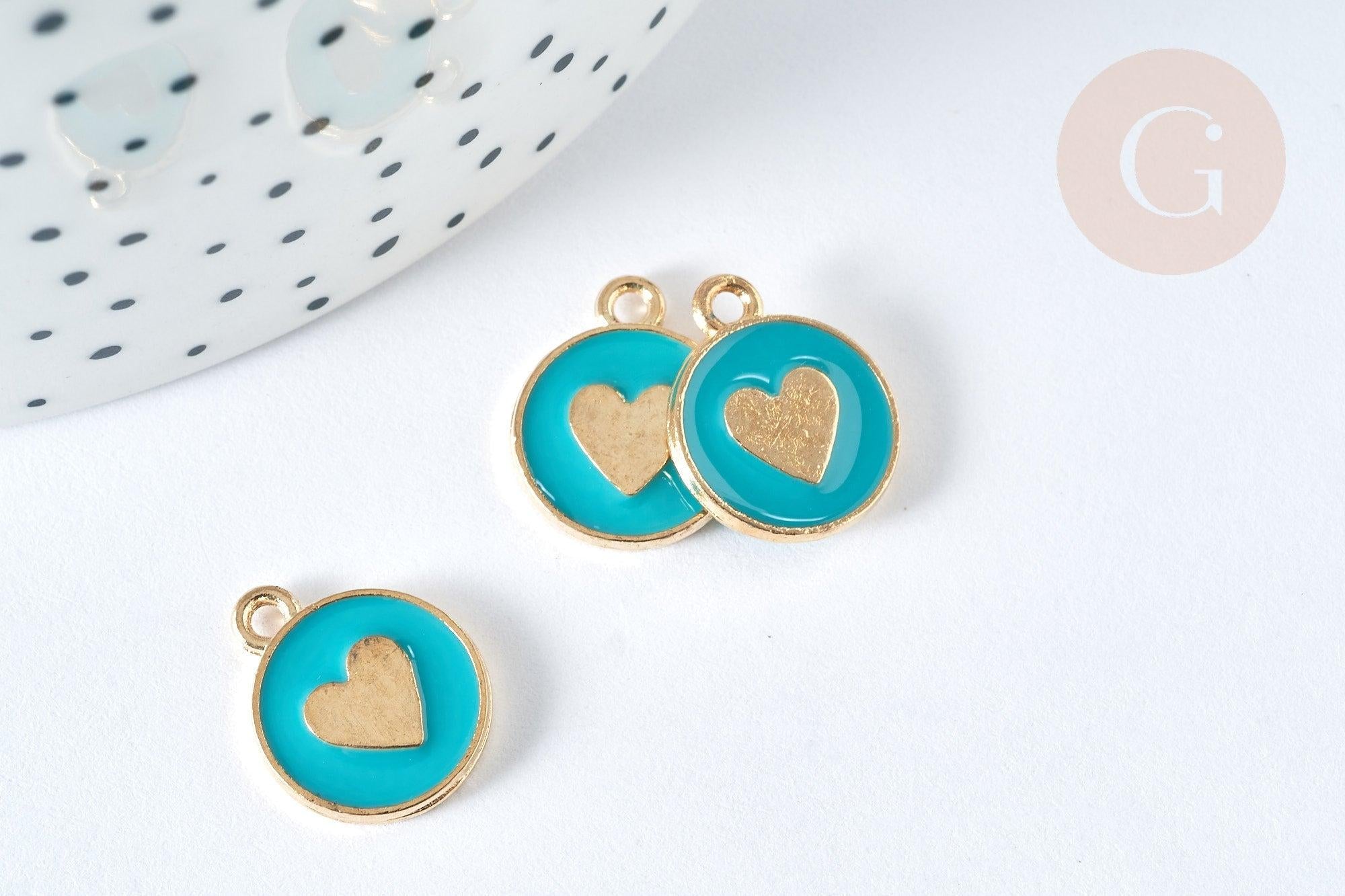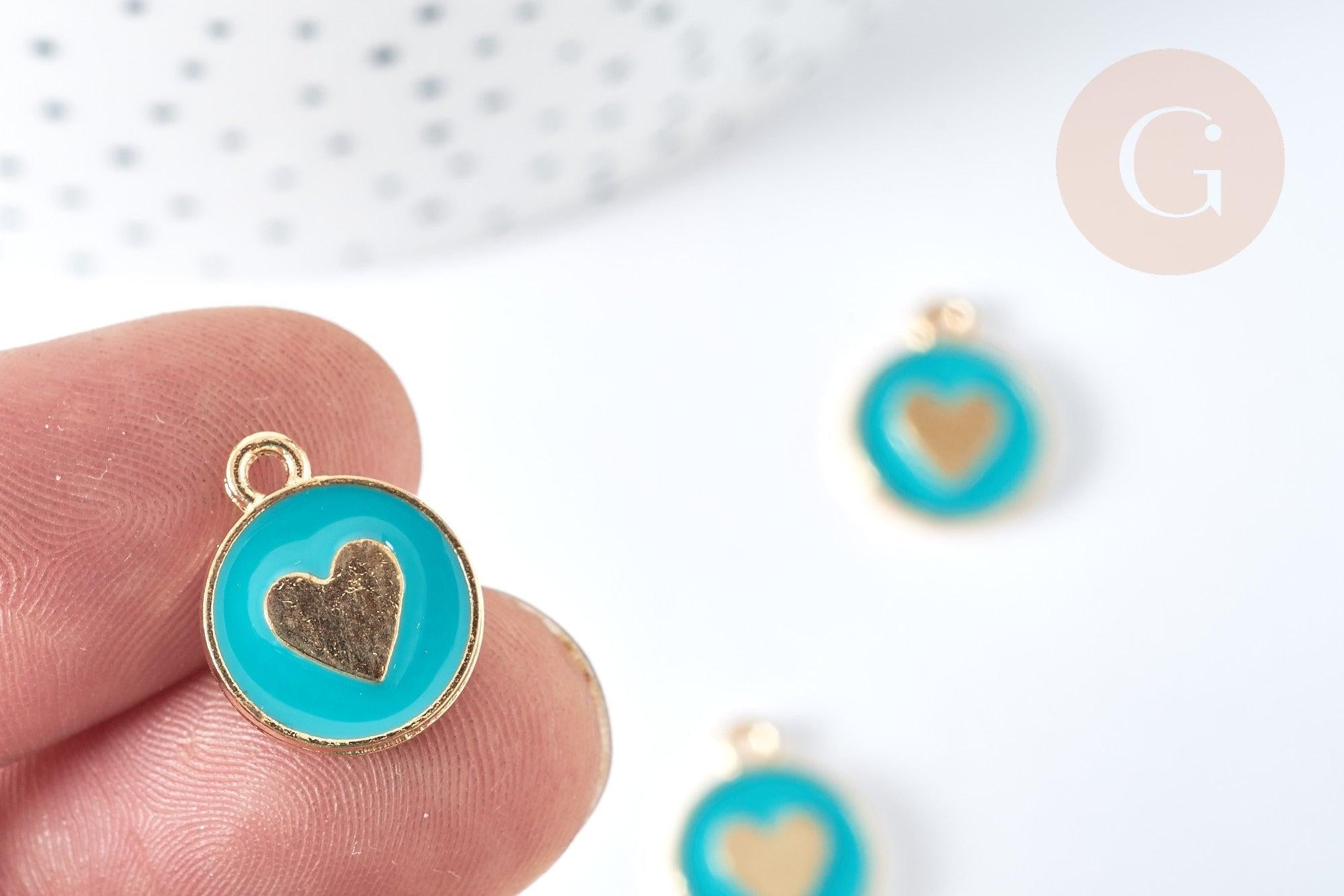 Con este colgante redondo de corazón dorado esmaltado en turquesa, ¡ declara tu amor!