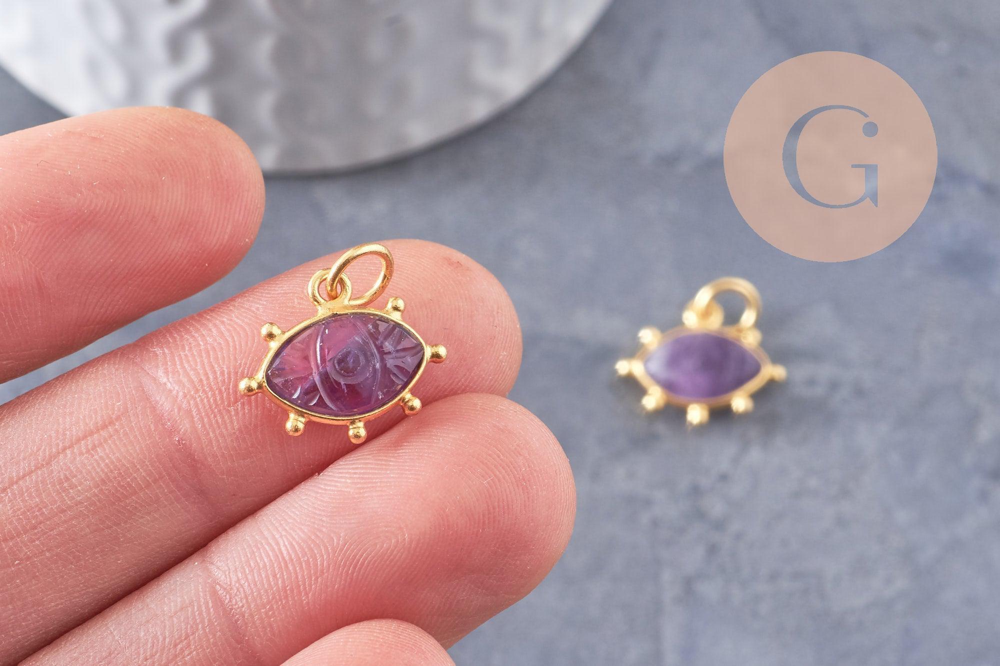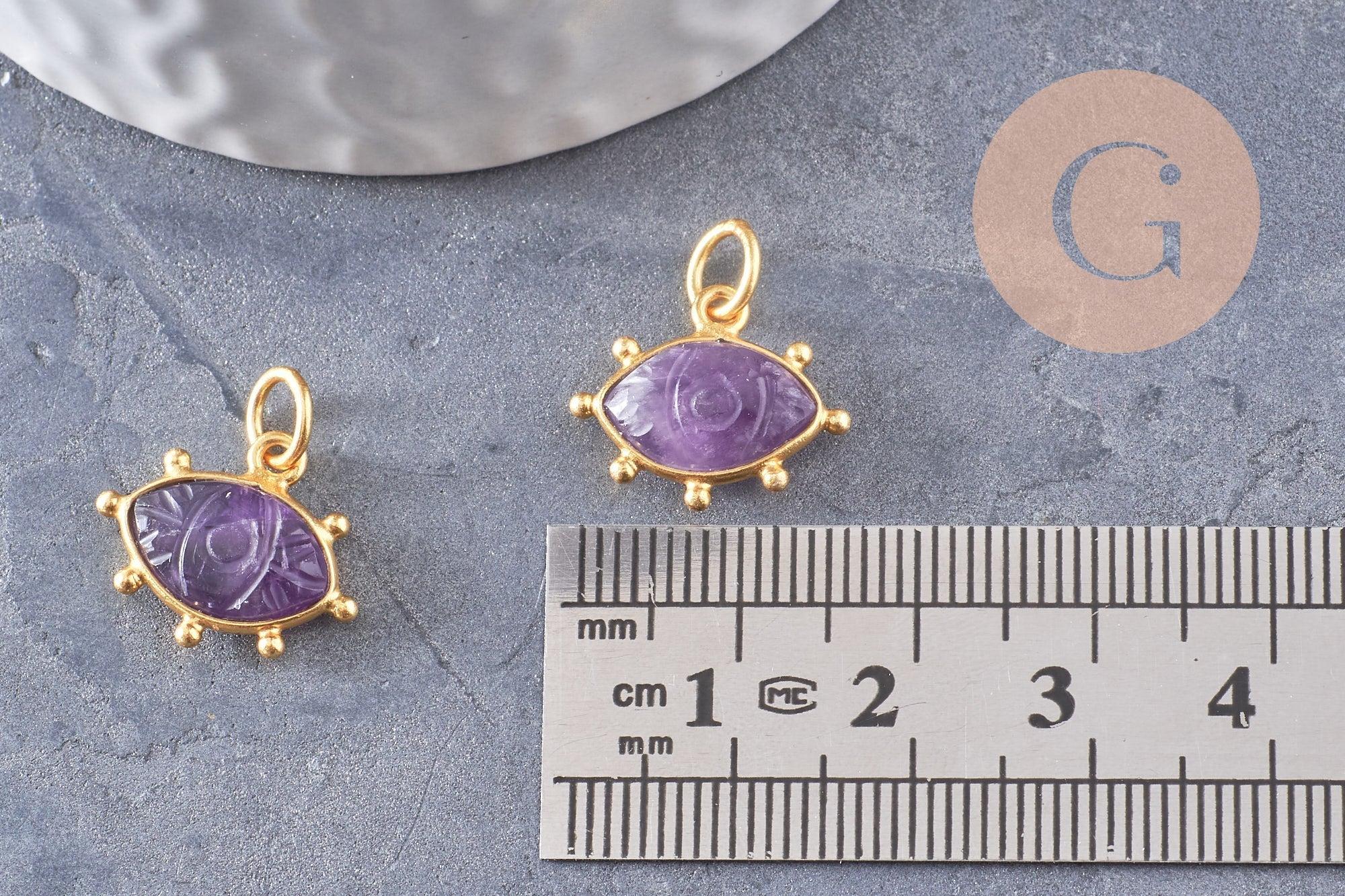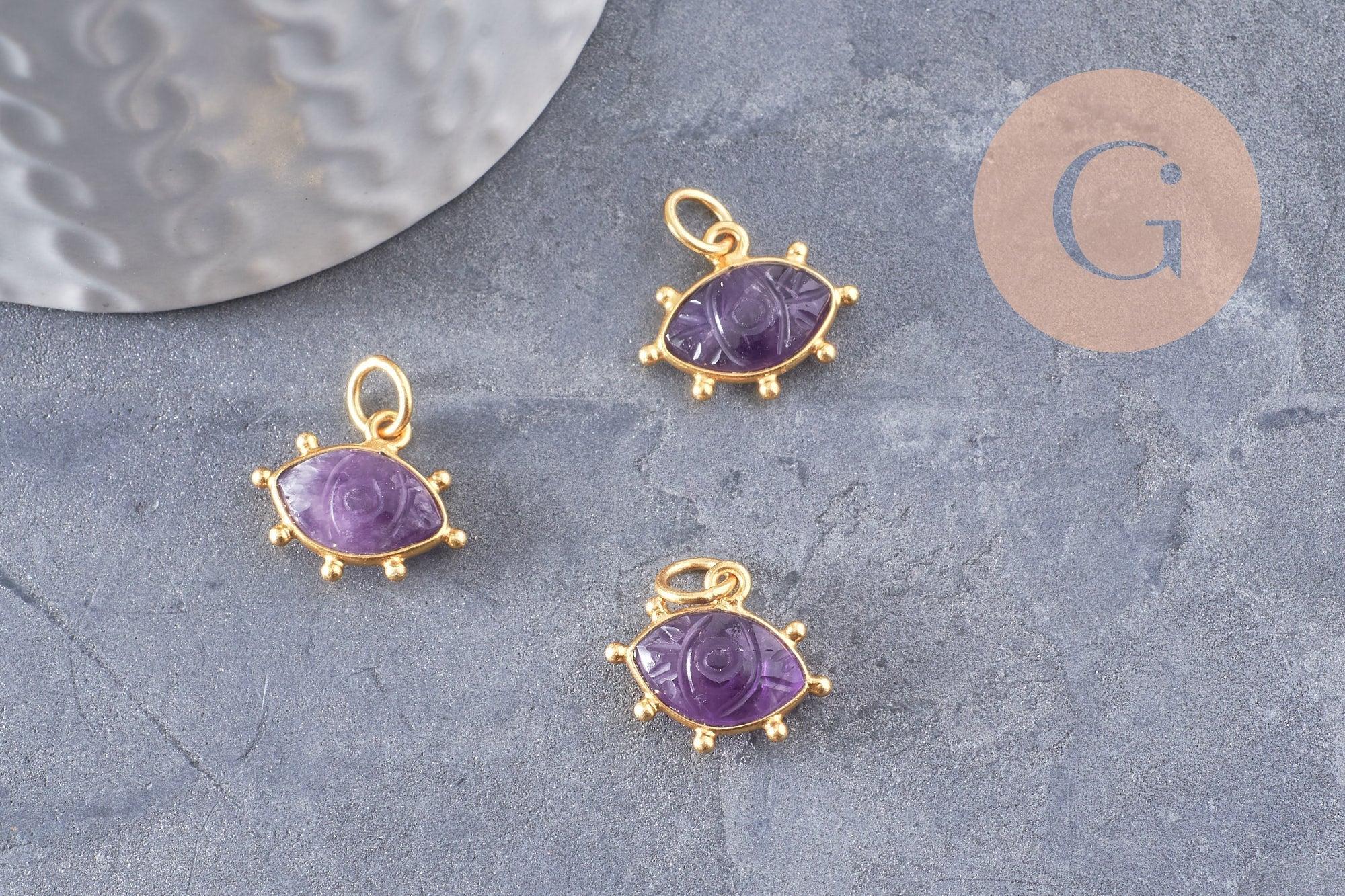 Colgante ojo amatista natural plata 925 oro 18K 15mm, colgante amuleto piedra natural x1 (G9867)