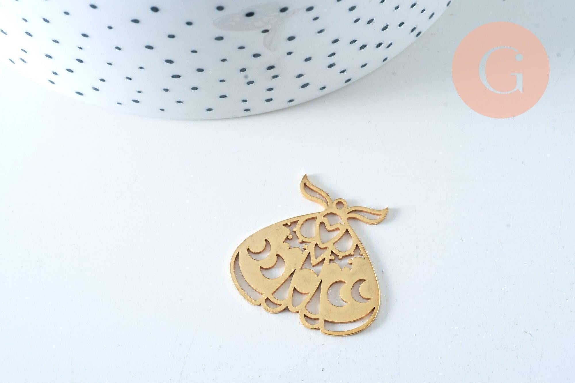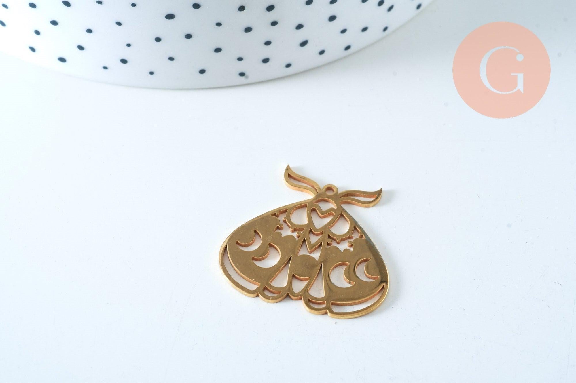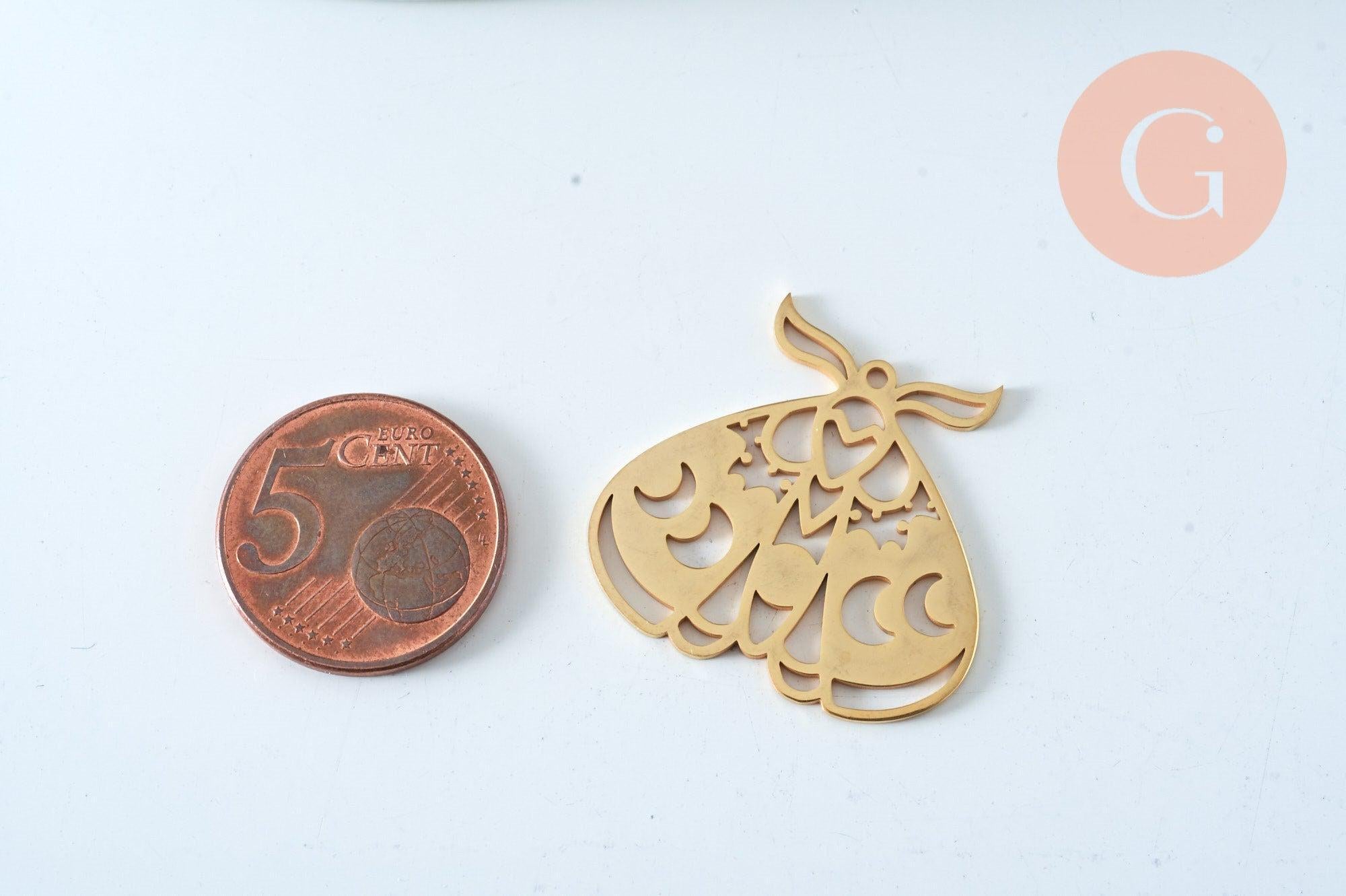 Colgante mariposa luna en acero bañado en oro 30mm, x1 (G6023)