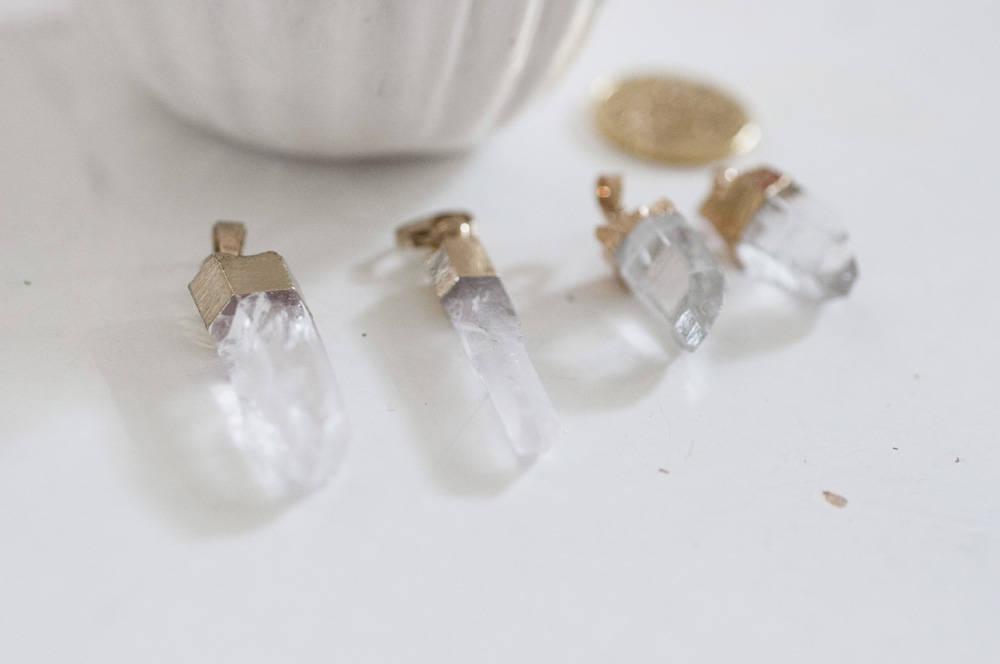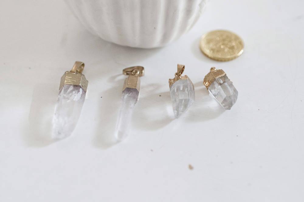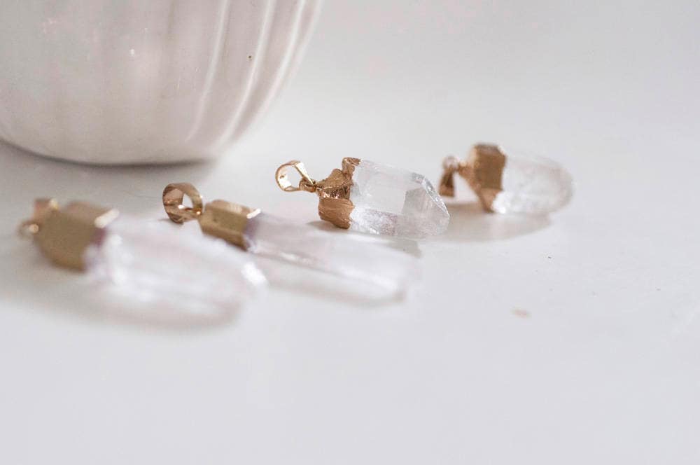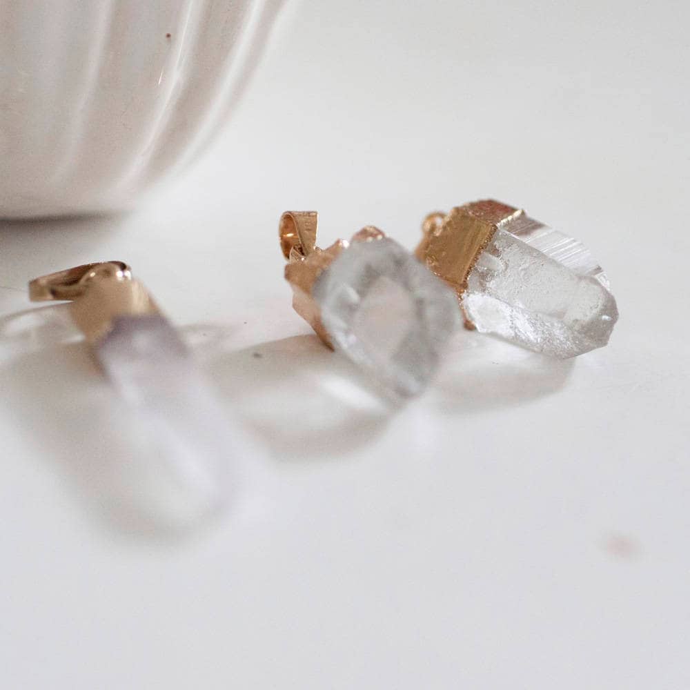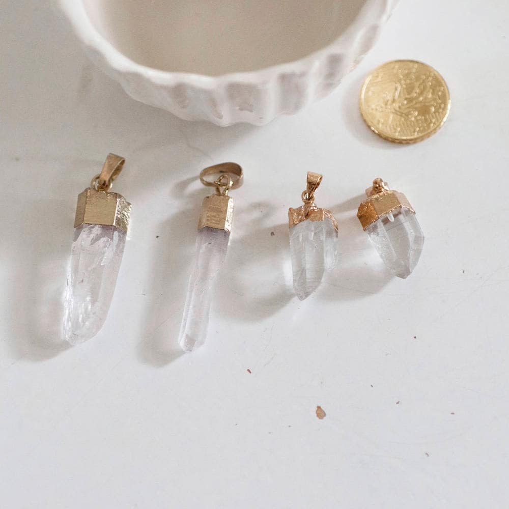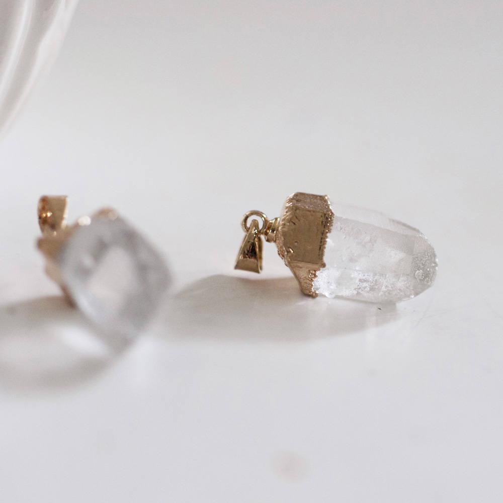 Colgante EP de cristal de roca natural transparente dorado, 25-65 mm, x1 G0848