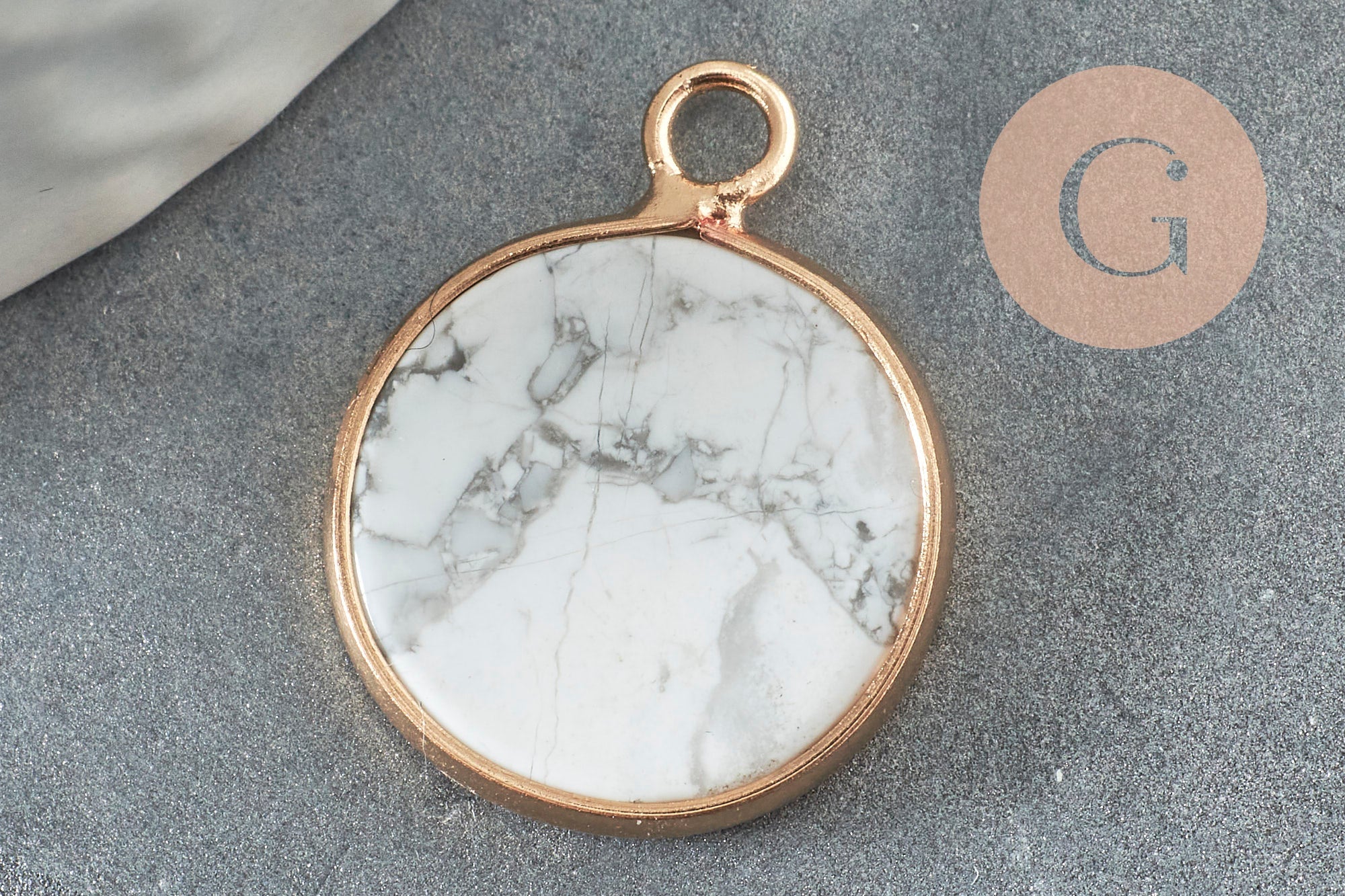 Déjate seducir por este colgante de howlita tintada natural con su soporte dorado.