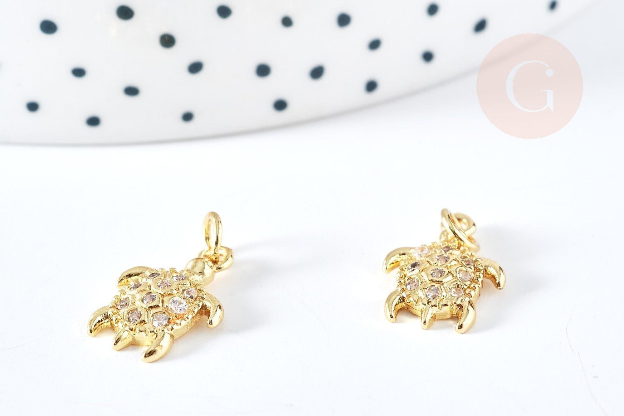 Déjese seducir por este encantador colgante tortuga de latón dorado , adornado con magníficos cristales de circonita. Este colgante es ideal para crear preciosas bisutería como collares, pulseras o pendientes.