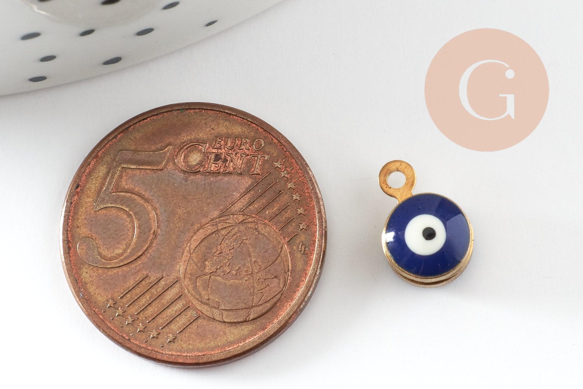 Colgantes de esmalte azul marino dorado, mal de ojo, latón dorado, colgante de la suerte, creación de joyas, 10mm, x10 G2980