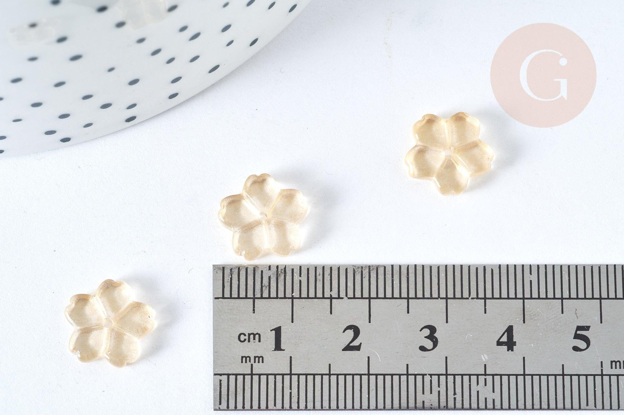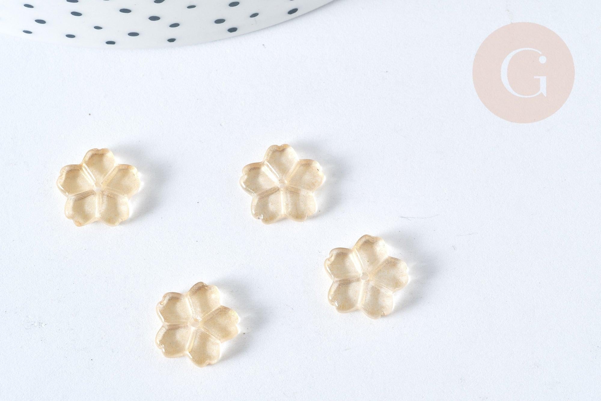 La flor de cristal transparente está cubierta con polvo de brillo dorado. Este es transparente y ligero.