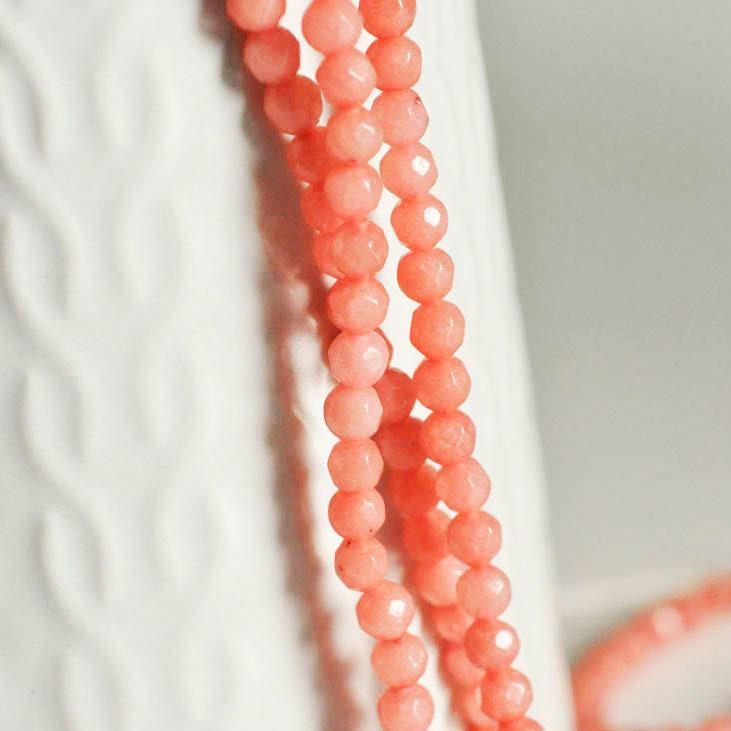 Perle jade rose corail, fourniture créative, perle jade,pierre naturelle,jade naturel,perle pierre,perle facette,4mm,fil de 91 perles,G3003