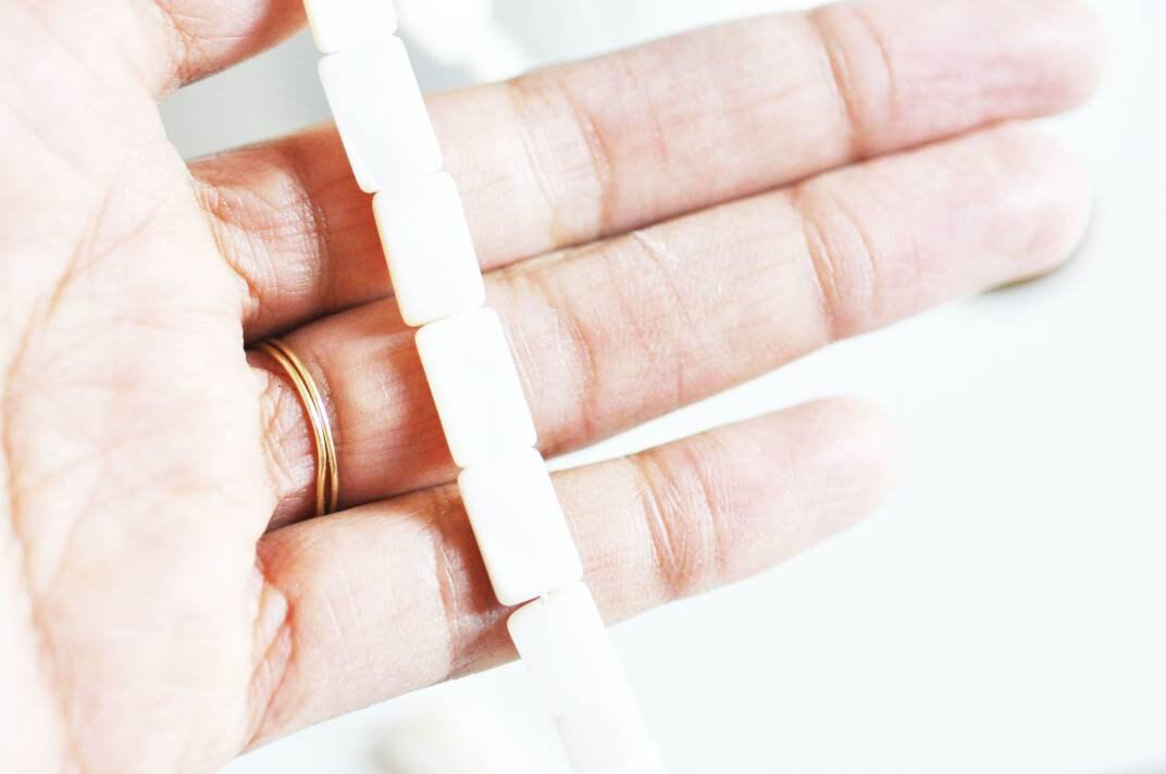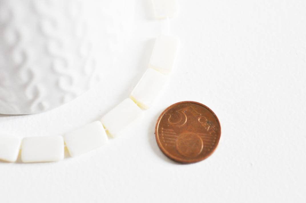 Cuenta rectangular de nácar blanco natural EP de 14 mm, x5 (G1074)