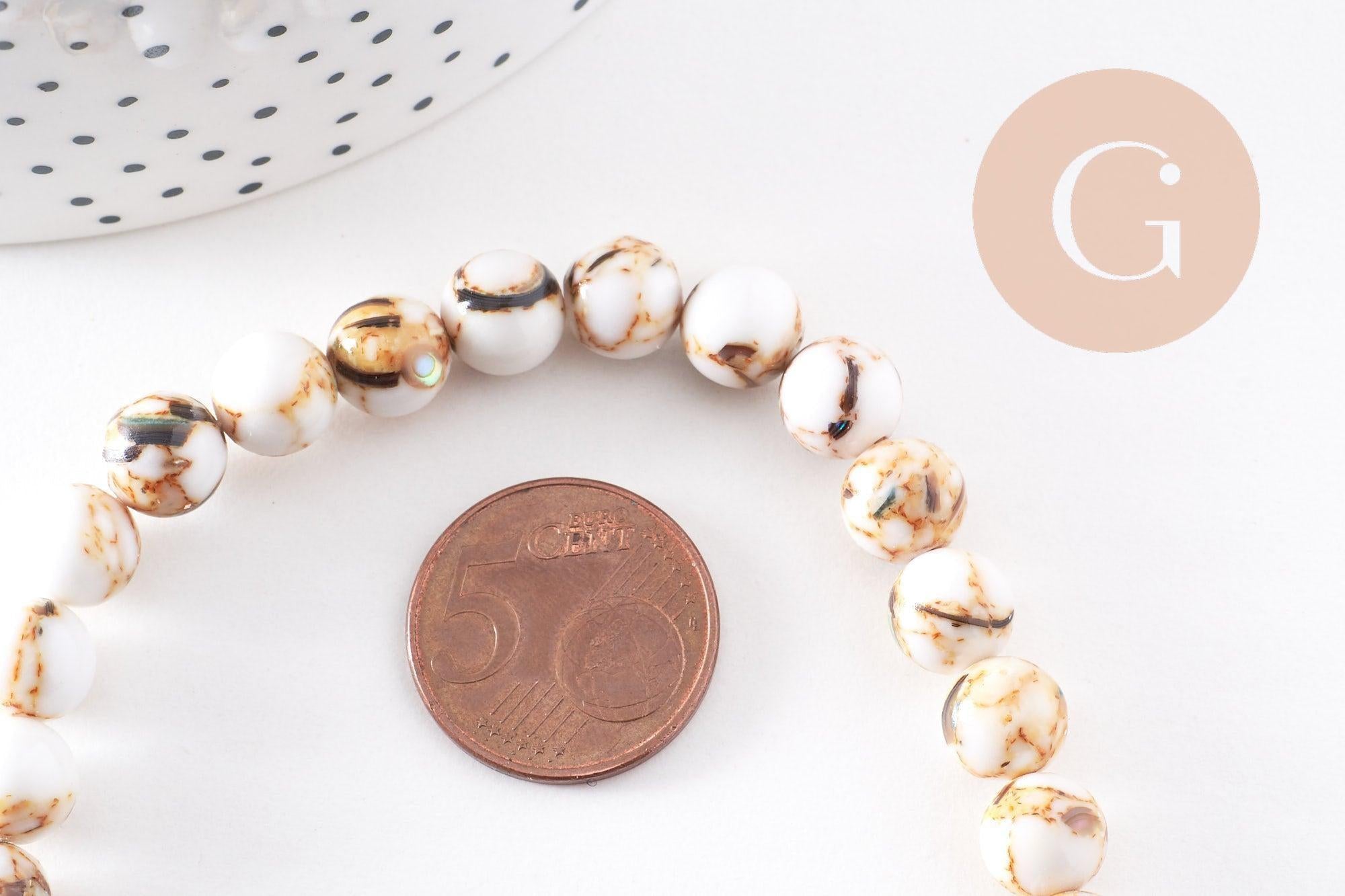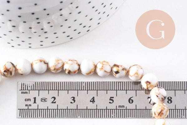 Perla redonda de concha y turquesa blanca de 8 mm, cuentas de piedra, turquesa sintética, hilo de 39,8 cm, x1 (G3840)