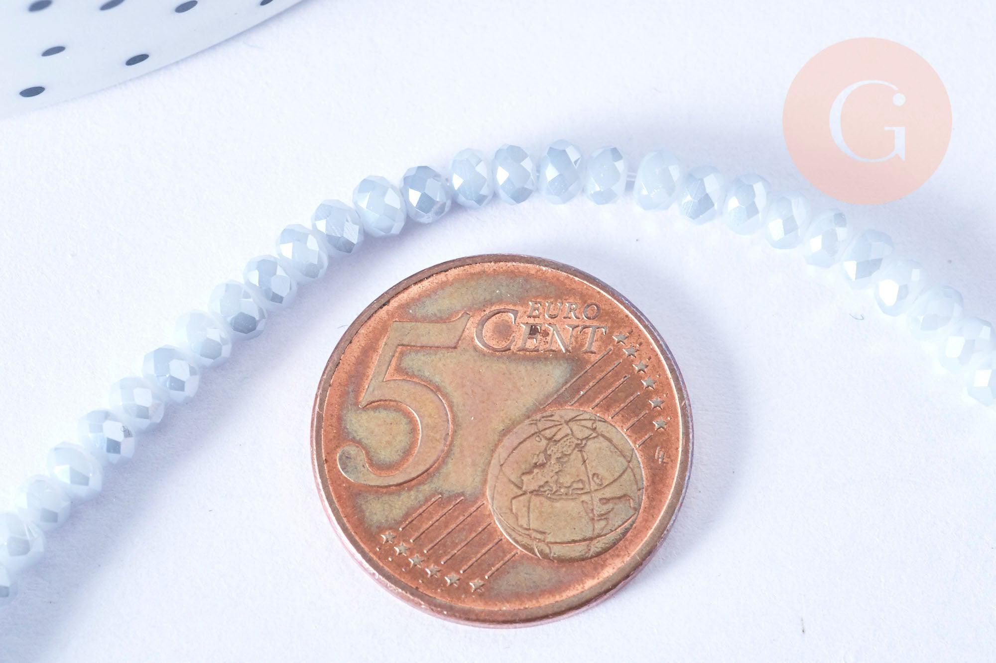 EP - Cuentas de cristal gris claro iridiscentes con forma de peonza de 3,5 x 2,5 mm, cuentas de joyería, cuentas de cristal, cuentas de vidrio facetadas, creación de joyas, hilo de 25,4 cm G6755