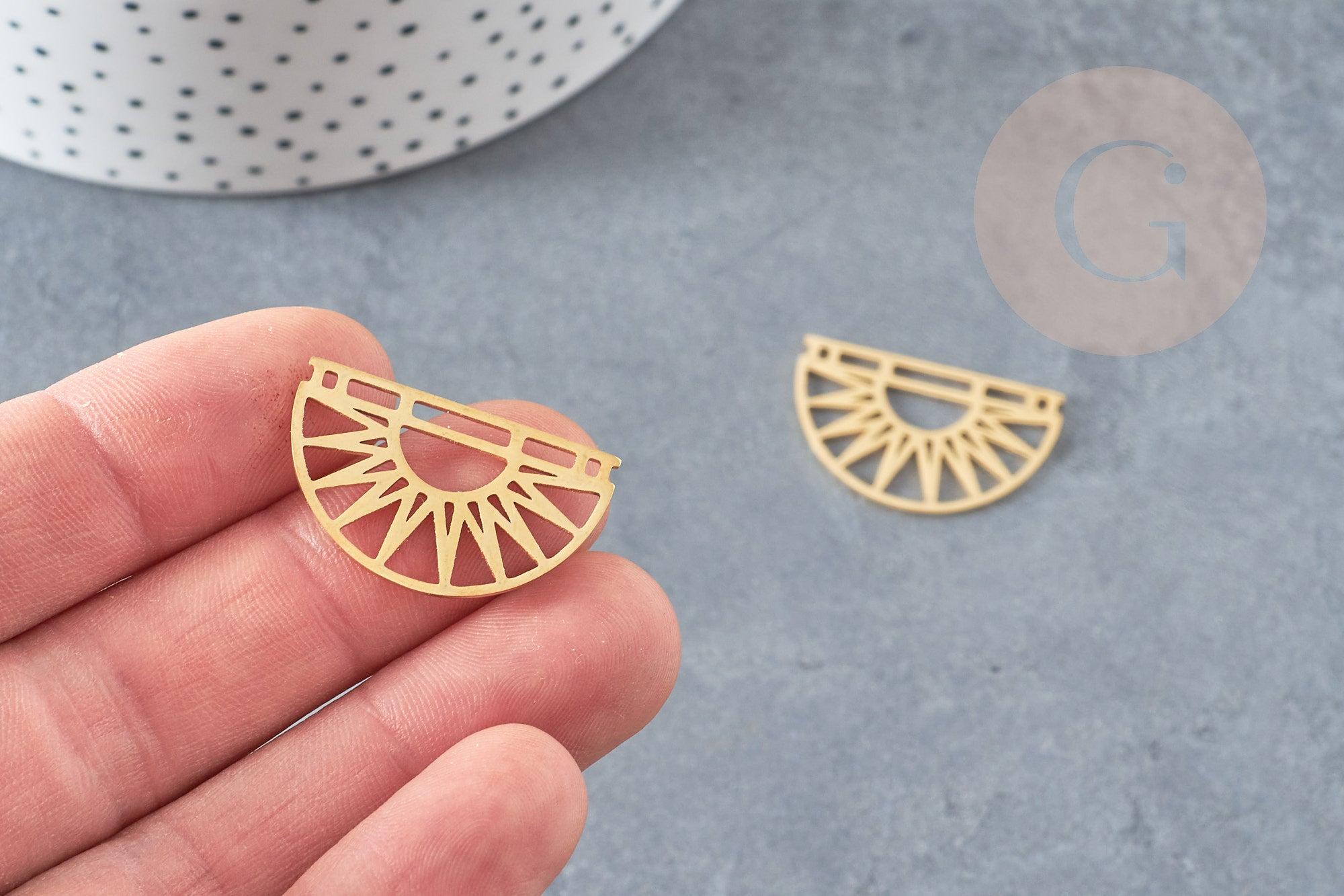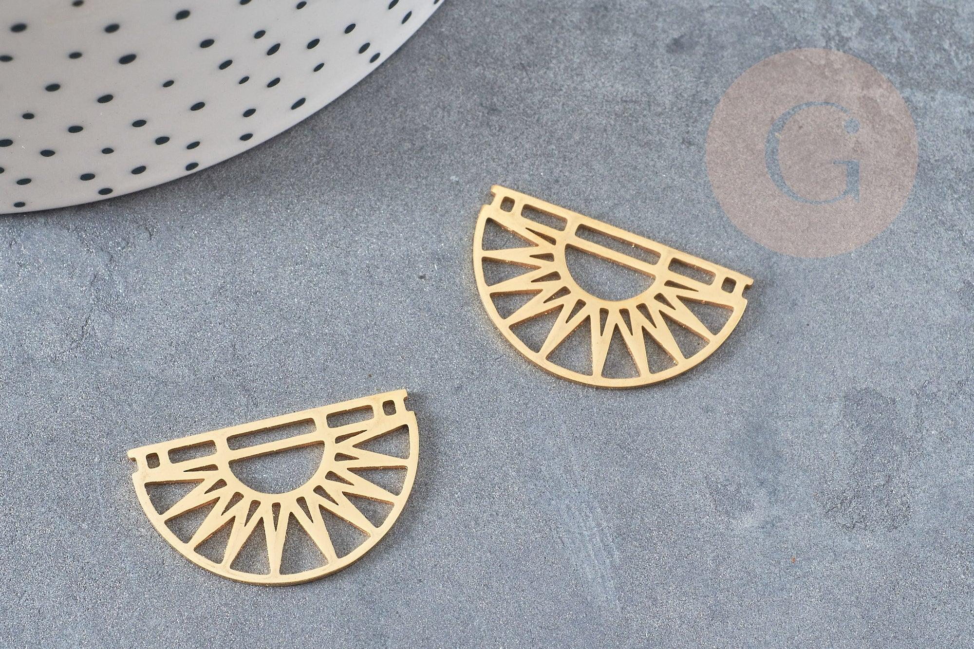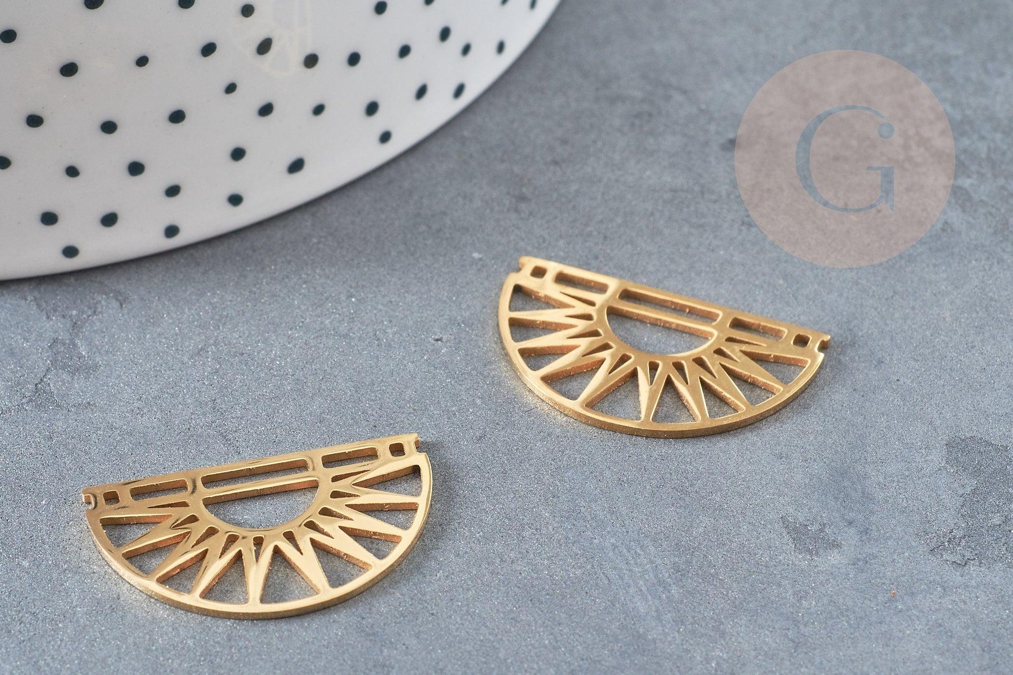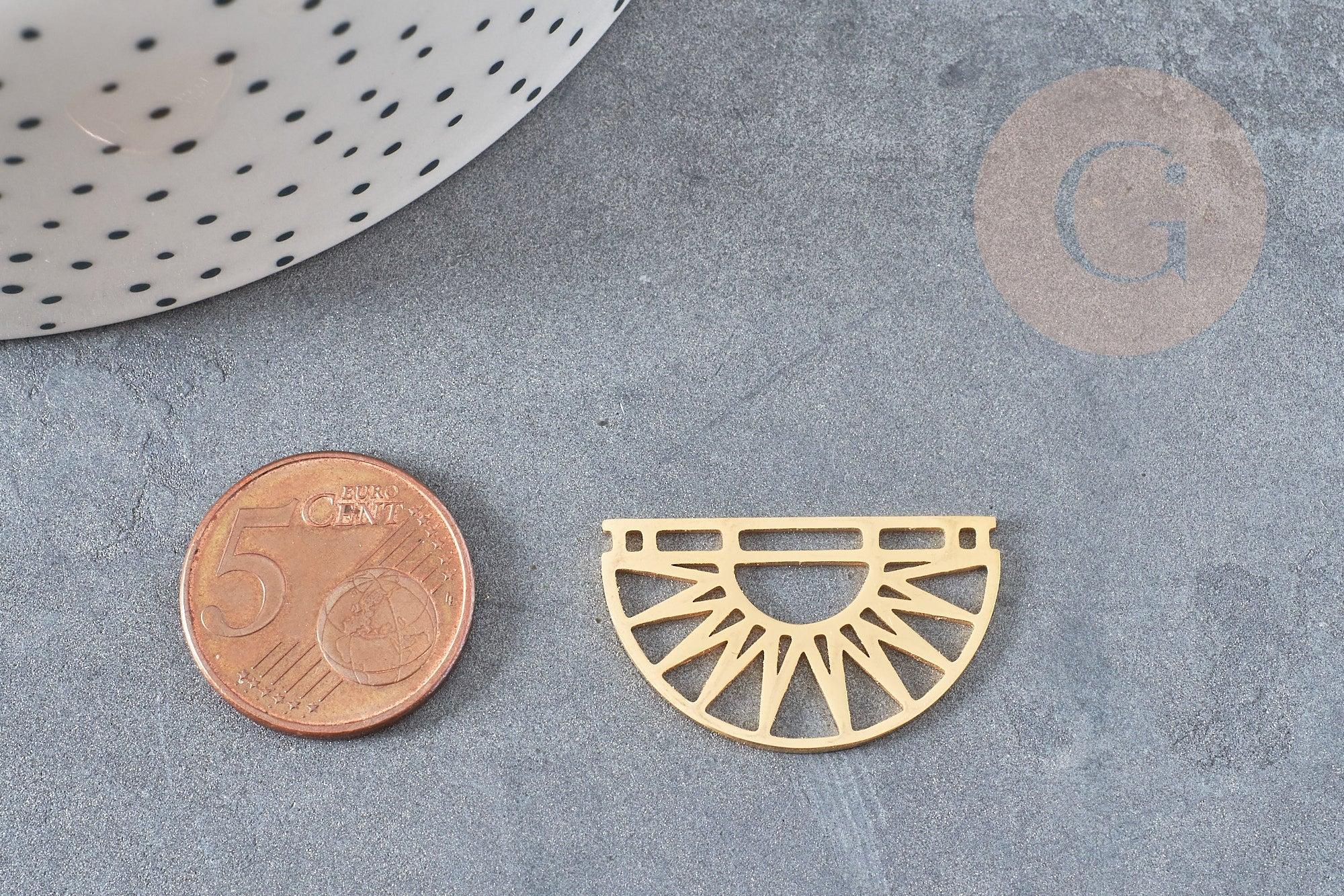 Colgante sol semicírculo acero dorado 17,5 mm, charm de acero inoxidable dorado, colgante sin níquel, x1 G6128