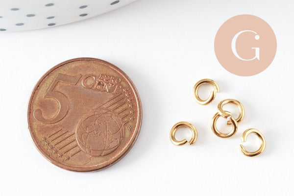 Utilice estos anillos de salto de acero inoxidable IP 304 dorados para crear sus joyas. Te permitirán fijar tus charms, colgantes y cadenas a diversos soportes.
