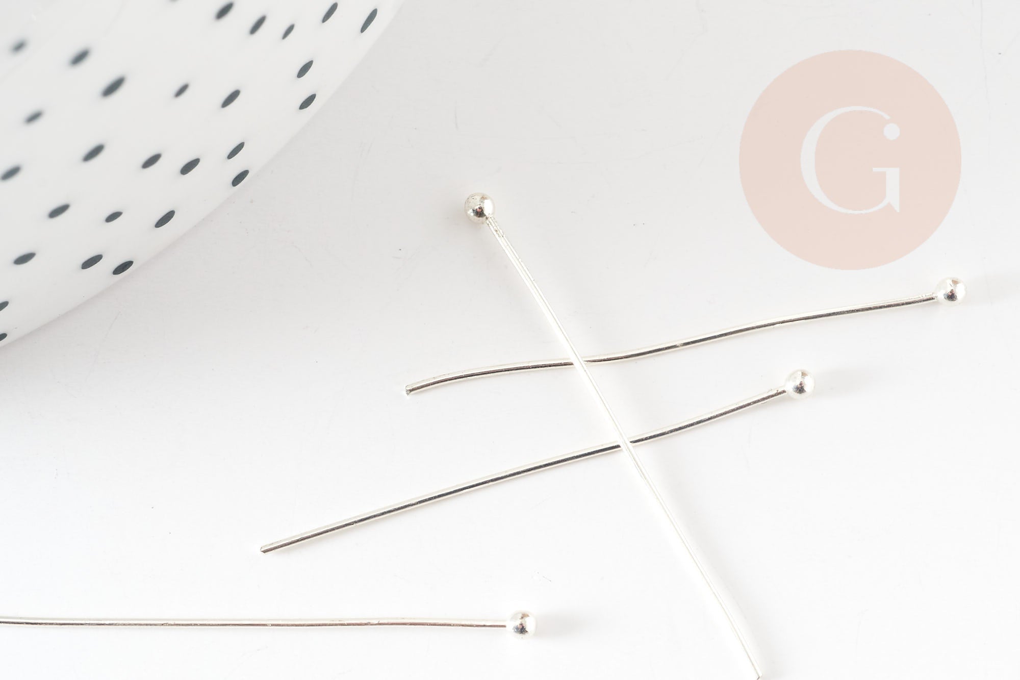 Descubra la versatilidad de estos pendientes de cabeza esférica de latón plateado de 35 mm . Perfectos para sus proyectos de joyería , este set incluye 10 accesorios con un elegante acabado plateado. Son perfectos para crear dijes y colgantes con todo tipo de cuentas.