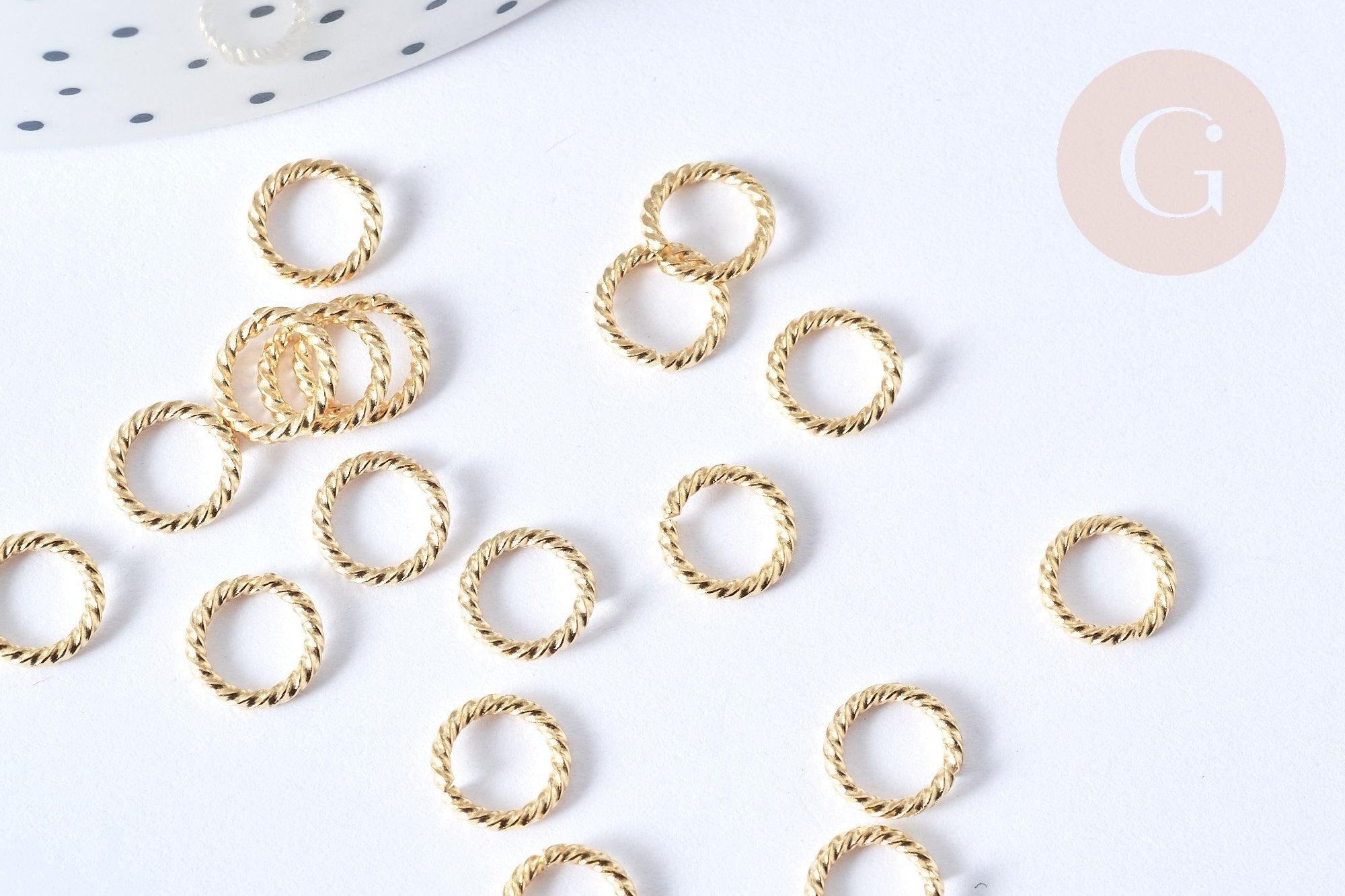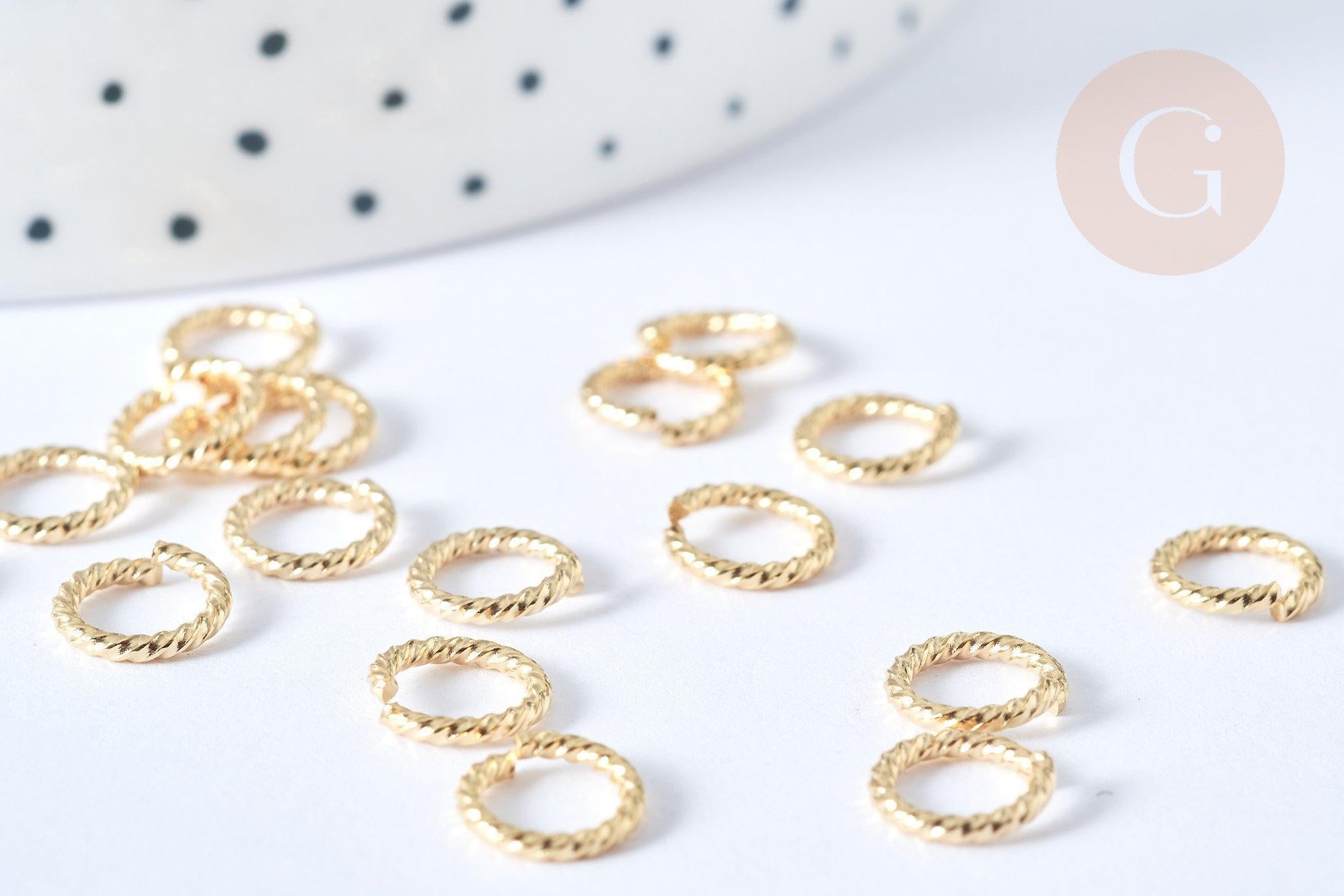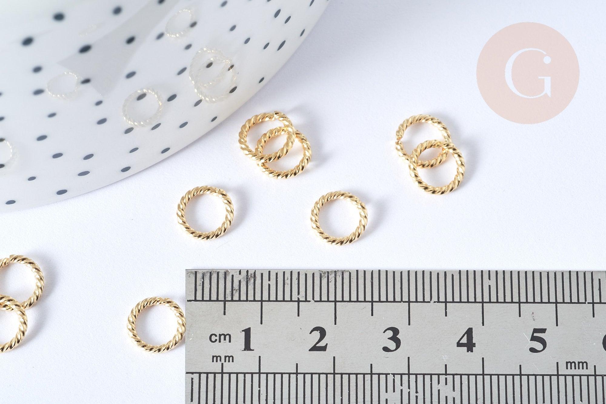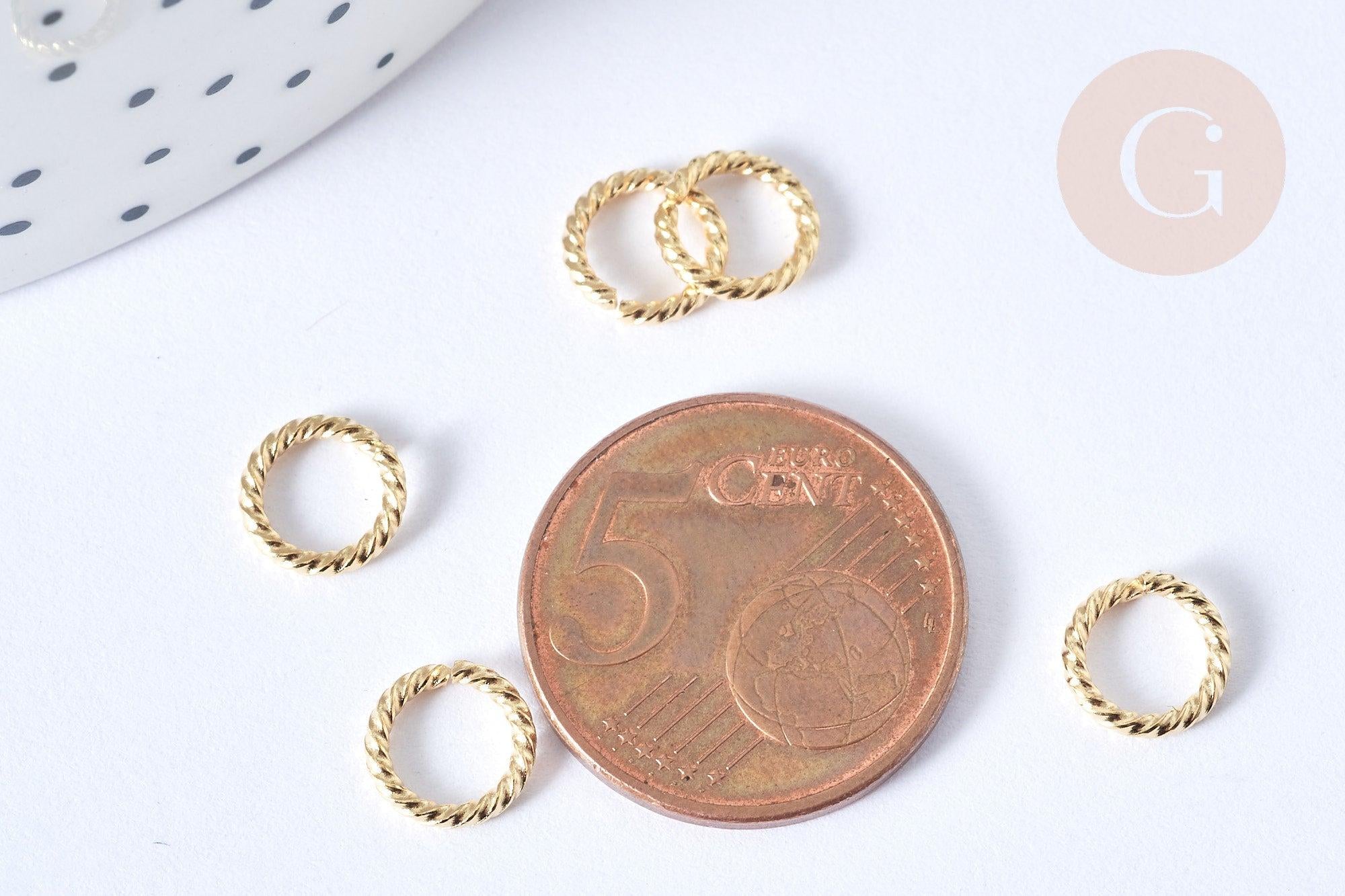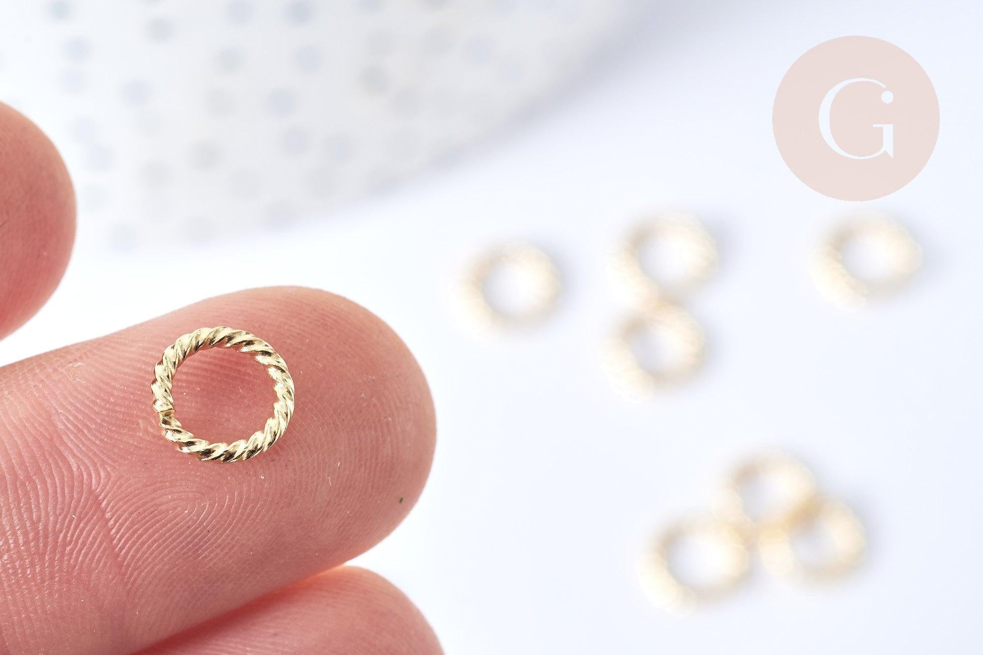Anneaux ouverts torsadés ronds acier 304 inoxydable doré 8mm, x8 (G7757)