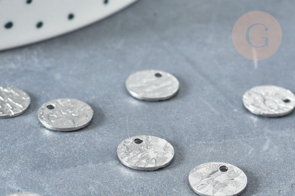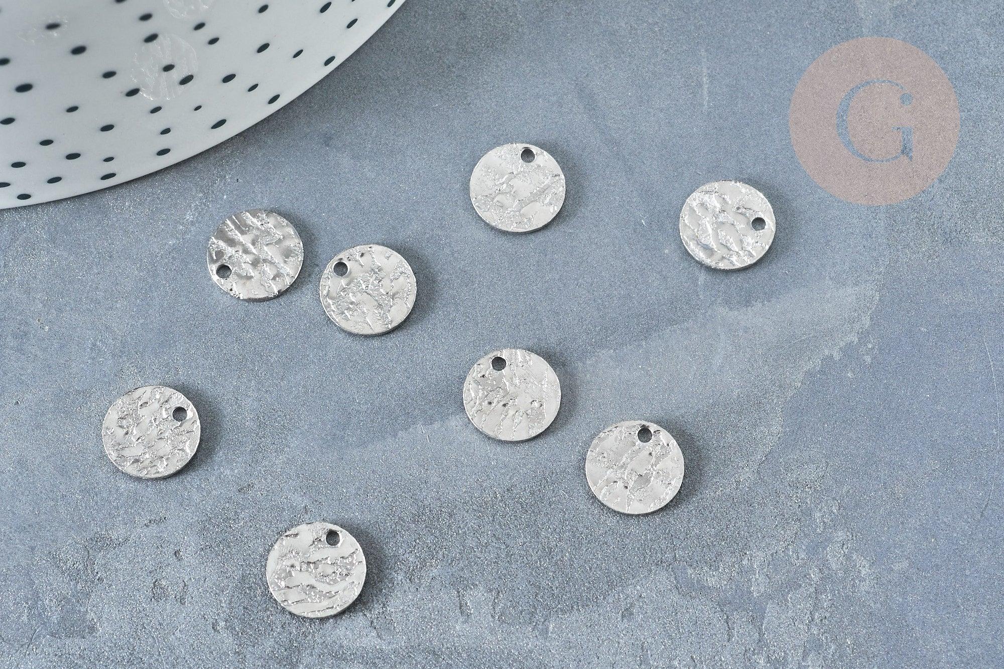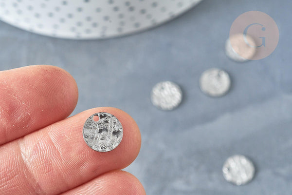 Déjate seducir por esta bonita medalla de plata texturizada para completar un collar, unos pendientes o una pulsera, para adornar con perlas o pequeñas piedras.