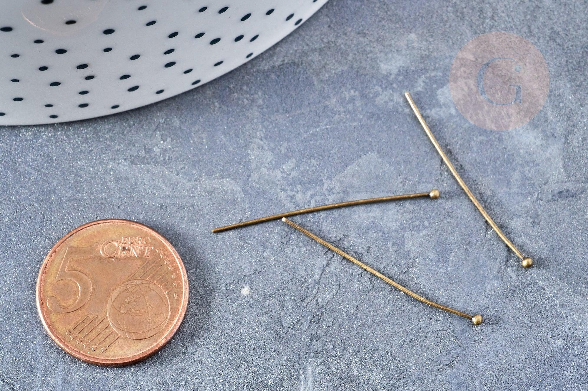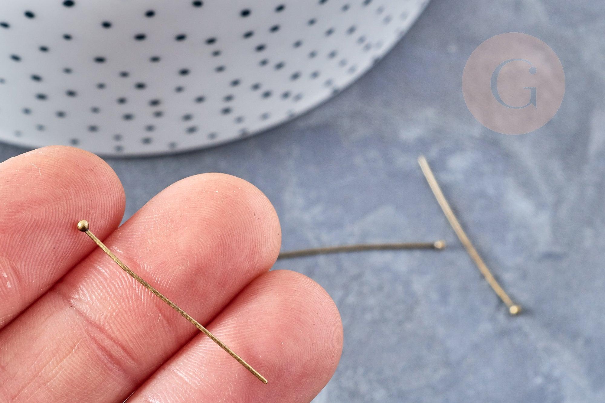 Estos clavos largos con cabeza de bola de latón de color bronce son elementos esenciales para crear bisutería DIY.