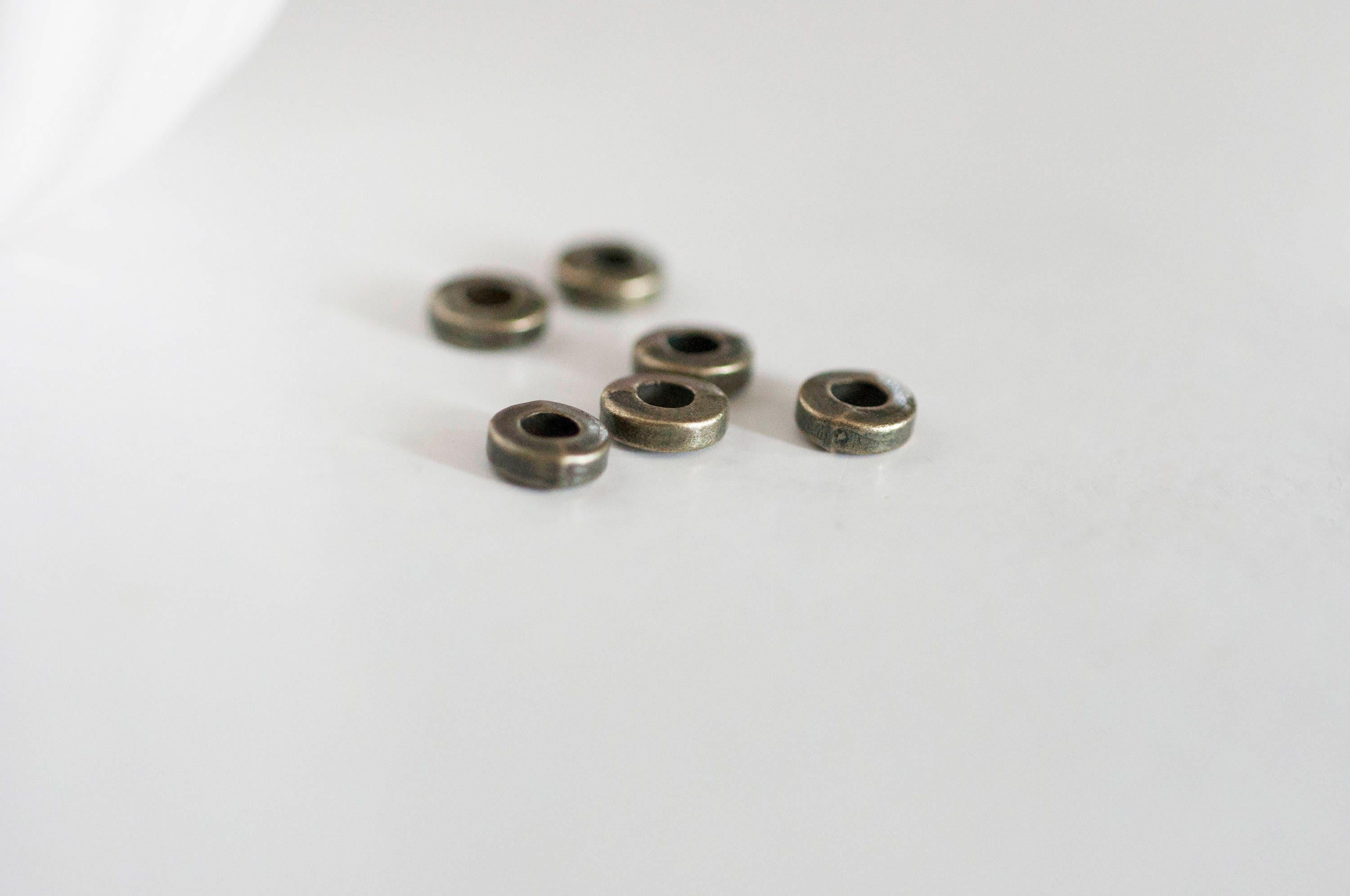 Estas pequeñas cuentas redondas tubulares de latón bronce son ideales para espaciar las cuentas, añadir volumen o estructurar un diseño de joyería. Su acabado en bronce les da un moderno look vintage.