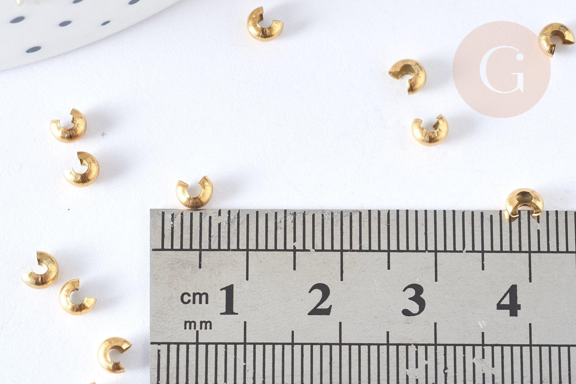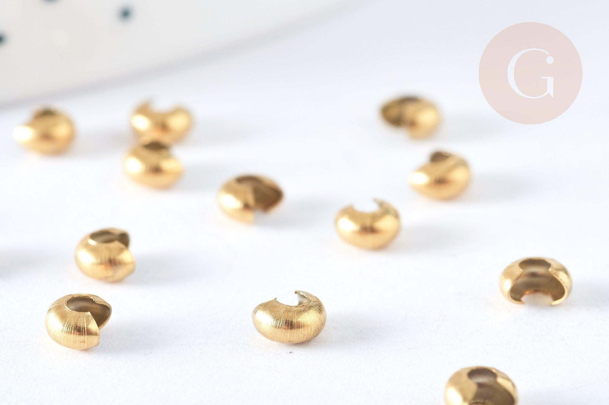 Caches perles à écraser acier 304 doré 2x3mm, x5 (G7320)